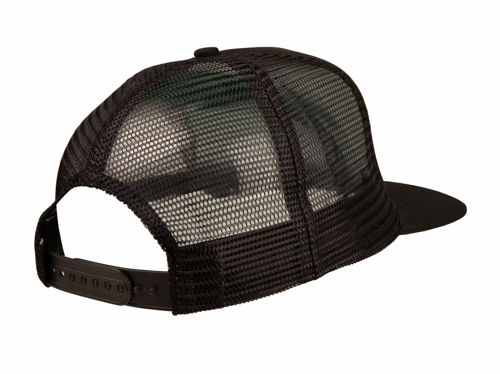La gorra de estilo camionero para hombre RTB Summit Mesh negra tiene una etiqueta de garantía Independent tejida en el cierre.