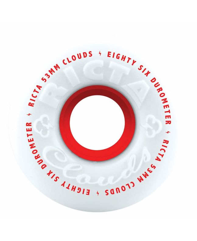 Ruedas de Skateboard Ricta Clouds 53mm 86a Blancas y Rojas (Pack 4 ruedas)