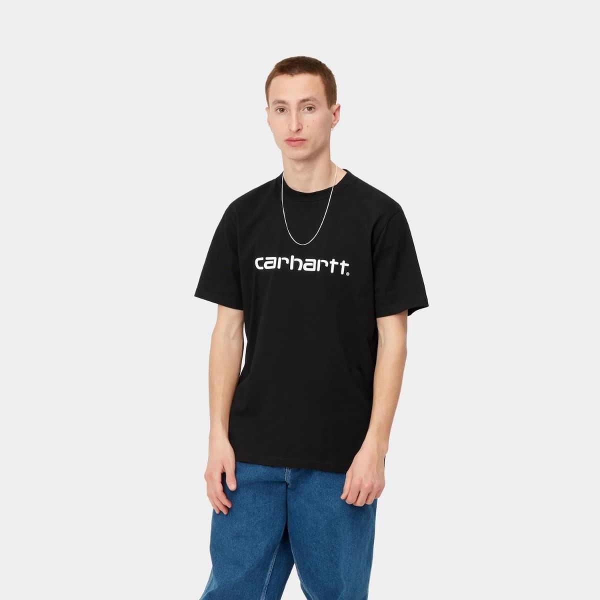 La camiseta de manga corta para hombre Script en negro con el logo en blanco (Black/White) de Carhartt WIP está confeccionada con tejido punto jersey de algodón sencillo (190g/sqm).