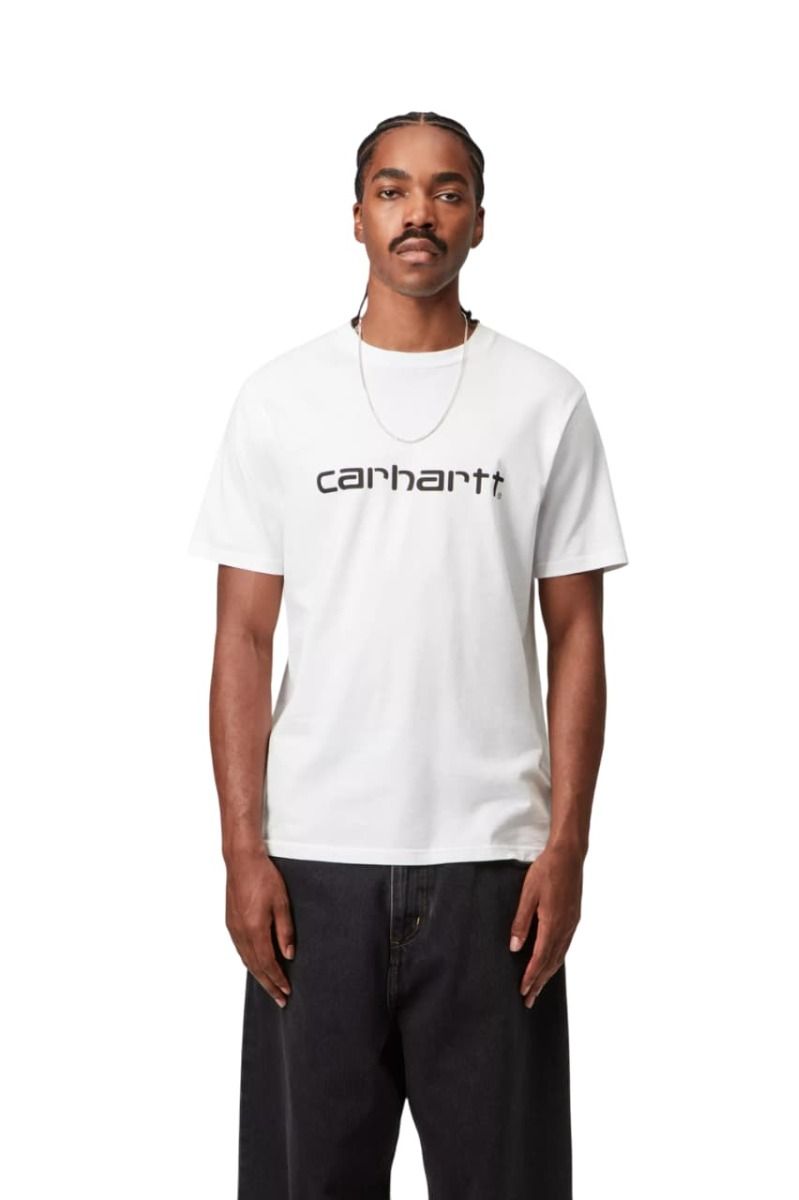 Camiseta para hombre Carhartt WIP Script blanca con logotipo de texto clásico de Carhartt color negro.