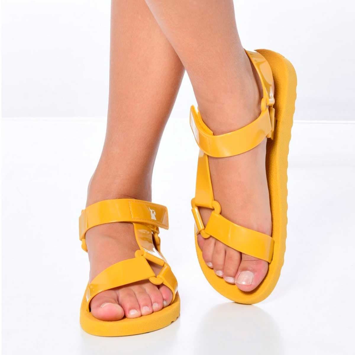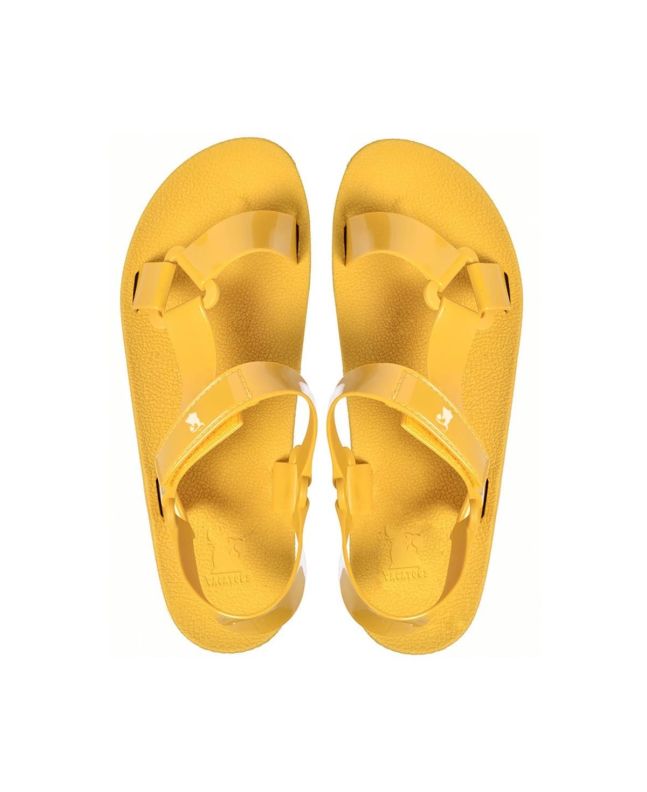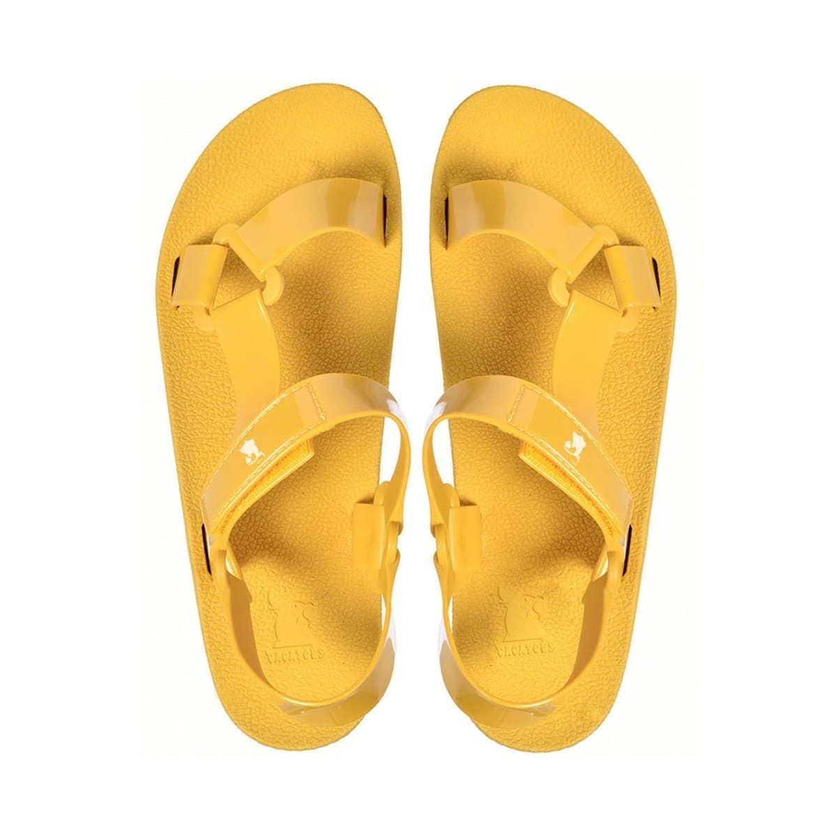 Estas sandalias eco-friendly presentan un diseño ligero, duradero y confortable de estilo chic y deportivo combinado con un tono amarillo mostaza que evoca las tardes soleadas del verano, un dulce olor a chicle y suaves correas para un ajuste más seguro.