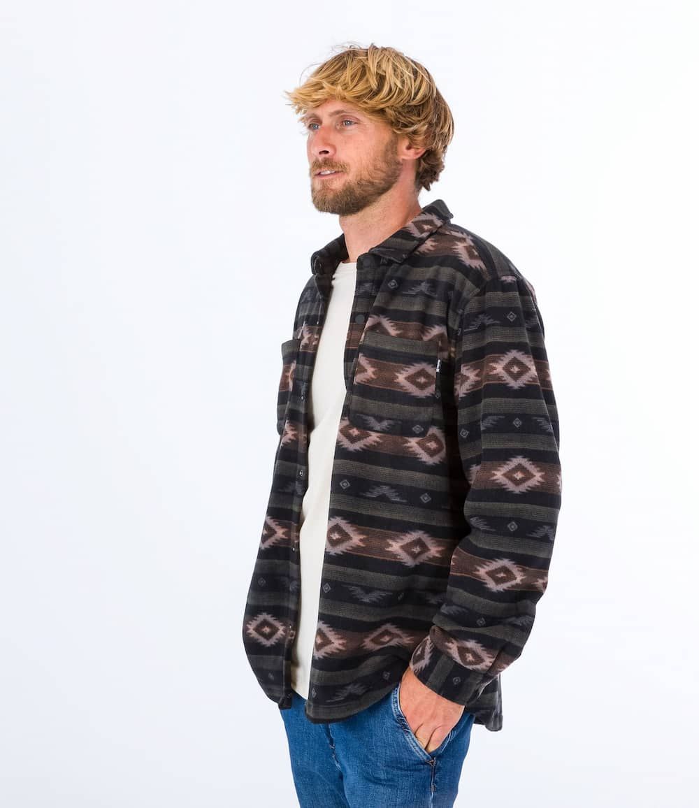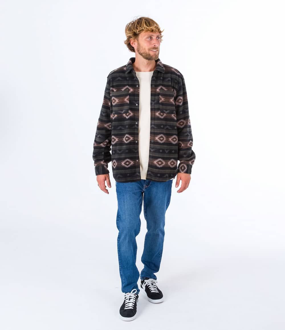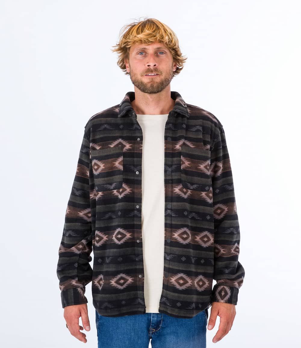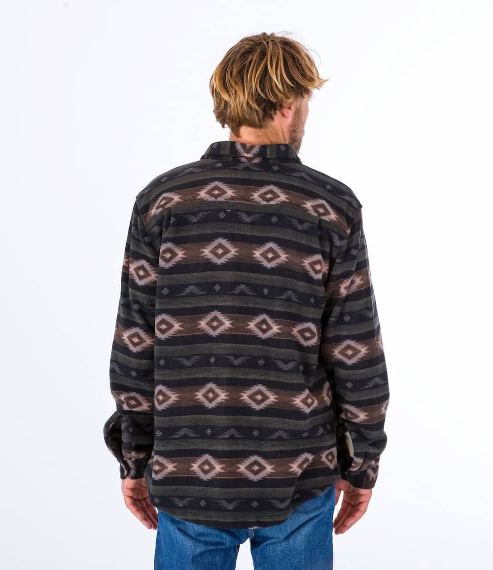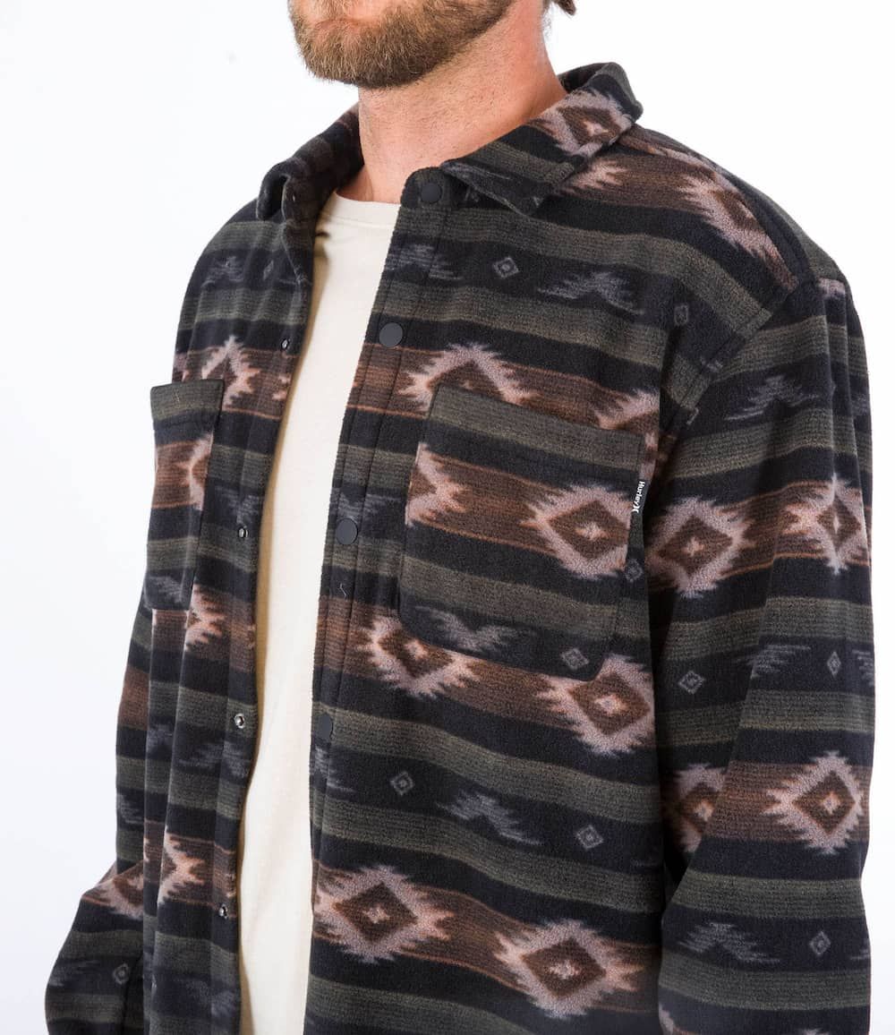 Esta cómoda camisa invernal cuenta con forro polar, manga larga, cierre de botones a presión, dos bolsillos en el pecho con detalles en costura triangular, dobladillo inferior festoneado, pliegues en el canesú posterior y una etiqueta de Hurley One and Only tejida en uno de los bolsillos.