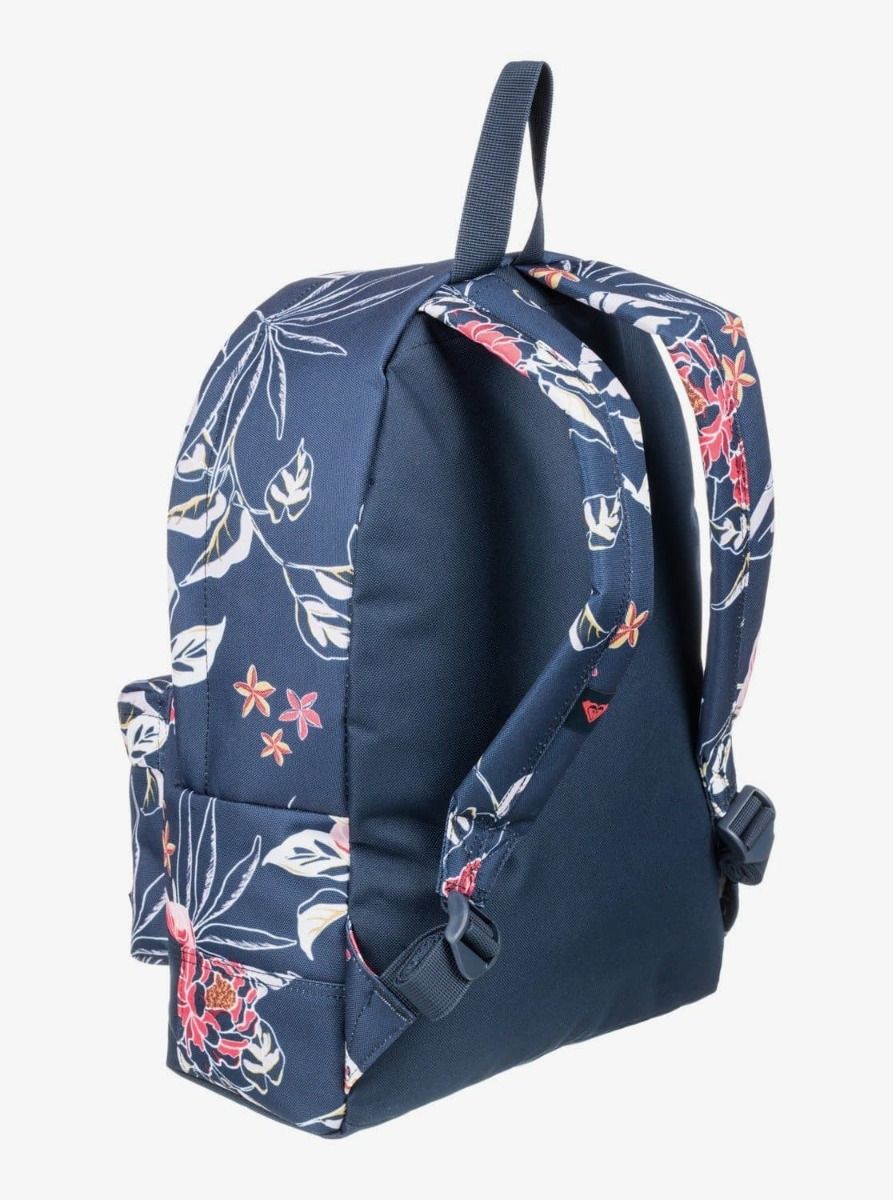 La mochila pequeña Sugar Baby 16L de Roxy en color azul con estampado floral (Mood Indigo Sunset Boogie S) ha sido fabricada con tejido mezcla de poliéster REPREVE™ trazable hecho de botellas de plástico recicladas.