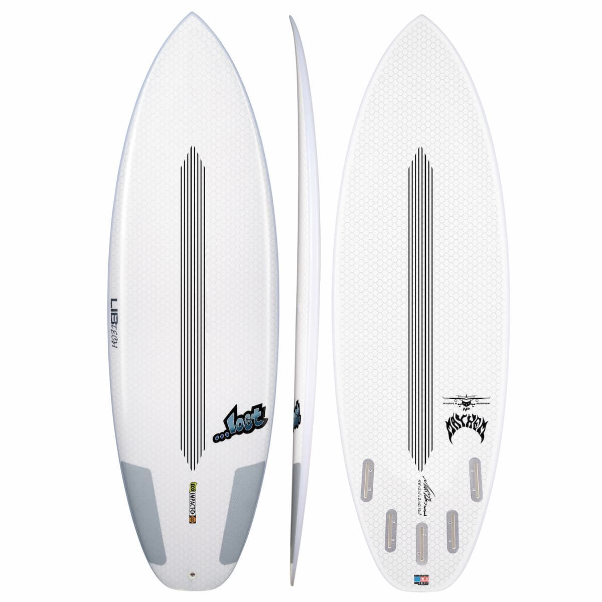 Además, la Puddle Jumper HP 5'10" viene equipada con cajón de quillas Lib Tech Surfboard Technology FOC II Fin Box se adapta a quillas FCS-II y ahora también a quillas Futures, junto con tapón para invento Lib Tech Surfboard Technology Leash Plug de fibra ligera con clavijas de aluminio aeronaútico 6061 T6.