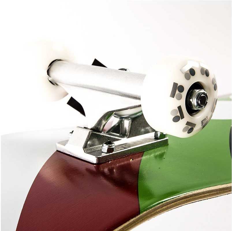 Cuenta con ruedas 100A de 52mm, rodamientos ABEC 7, ejes 5.0 High y amortiguadores blandos para una versatilidad total tanto en skateparks como en la calle.
