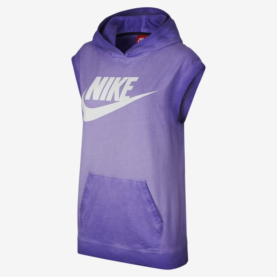El chaleco deportivo con capucha para mujer Solstice Sleeveless Hoodie en tono morado (Wash Purple) de Nike está confeccionado con tejido suave de 100% algodón.