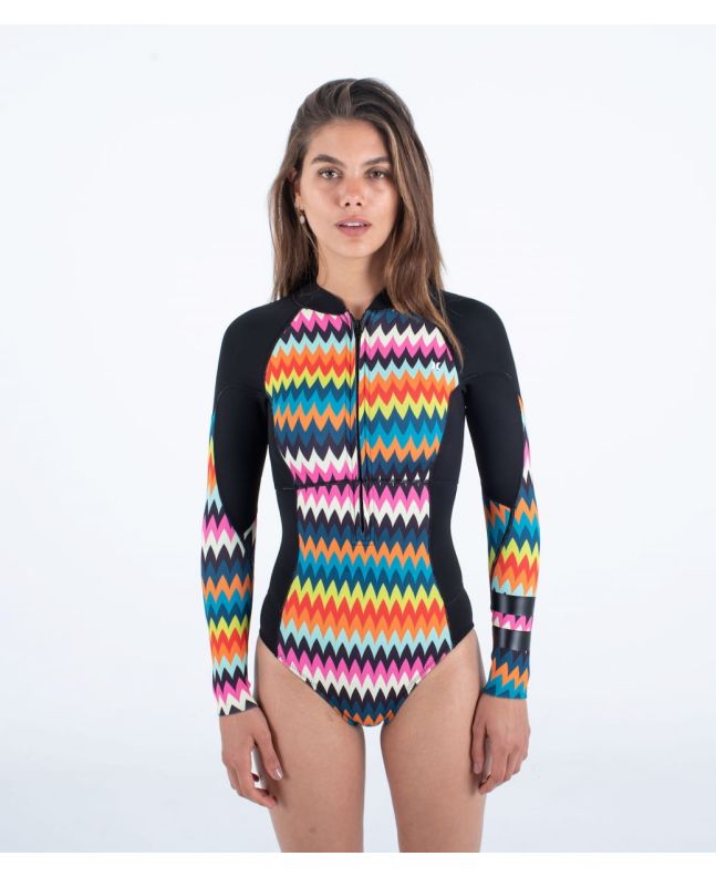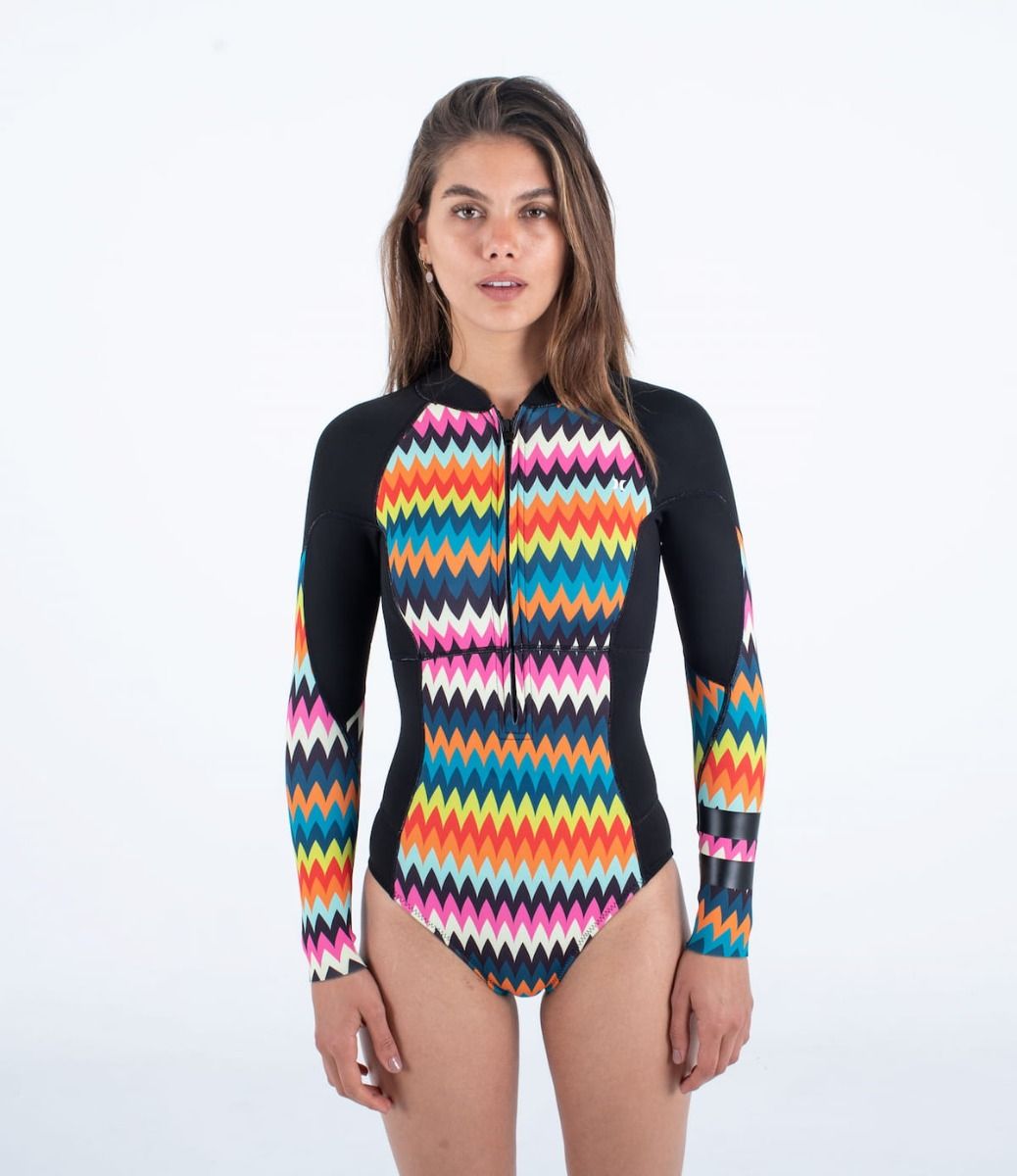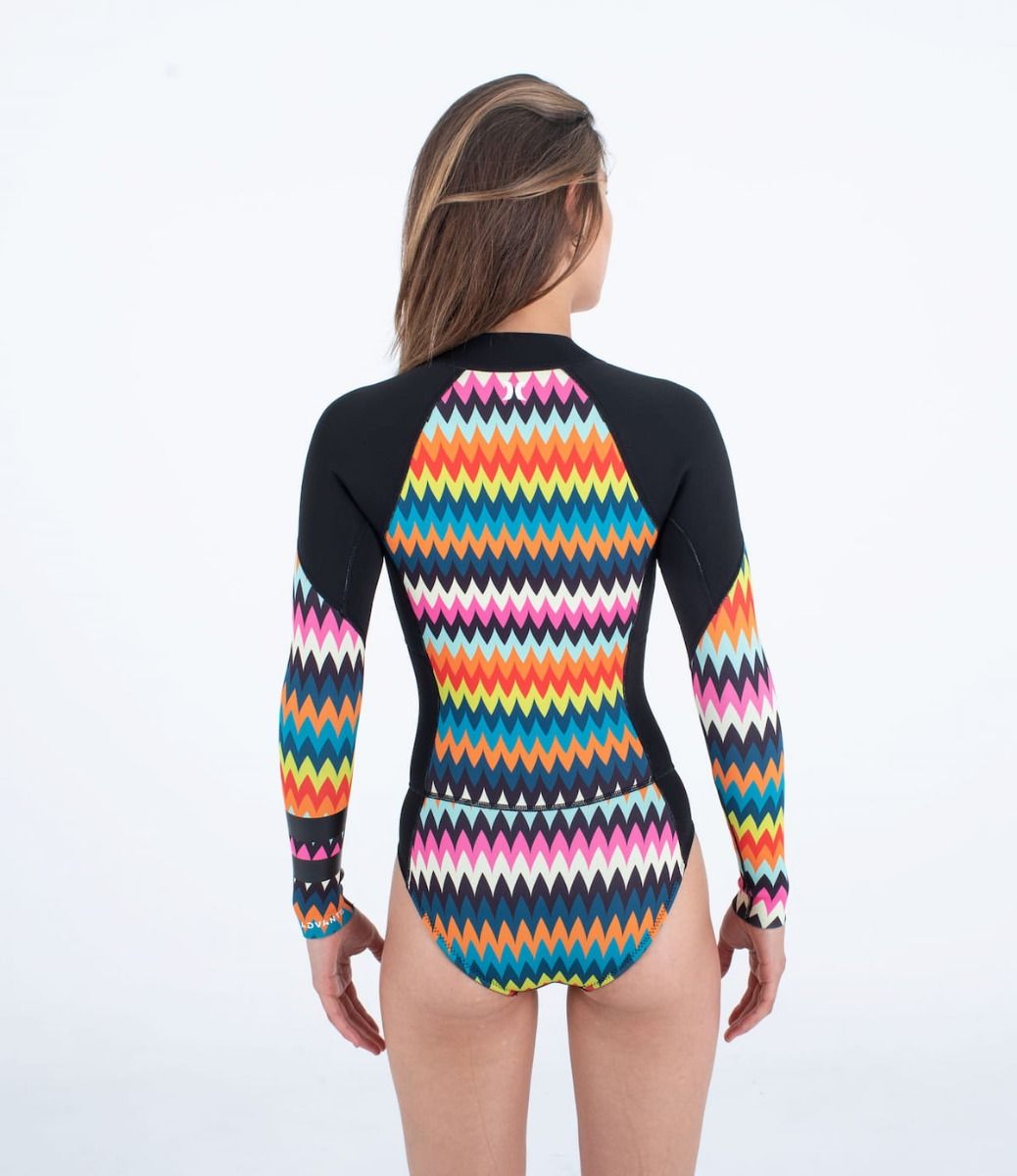 Neopreno de primavera con manga larga y cremallera frontal Hurley Advant Springsuit 2/2mm en color negro con estampado multicolor para mujer