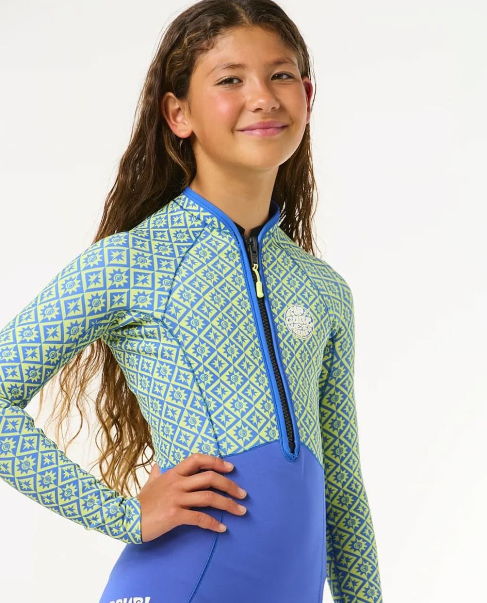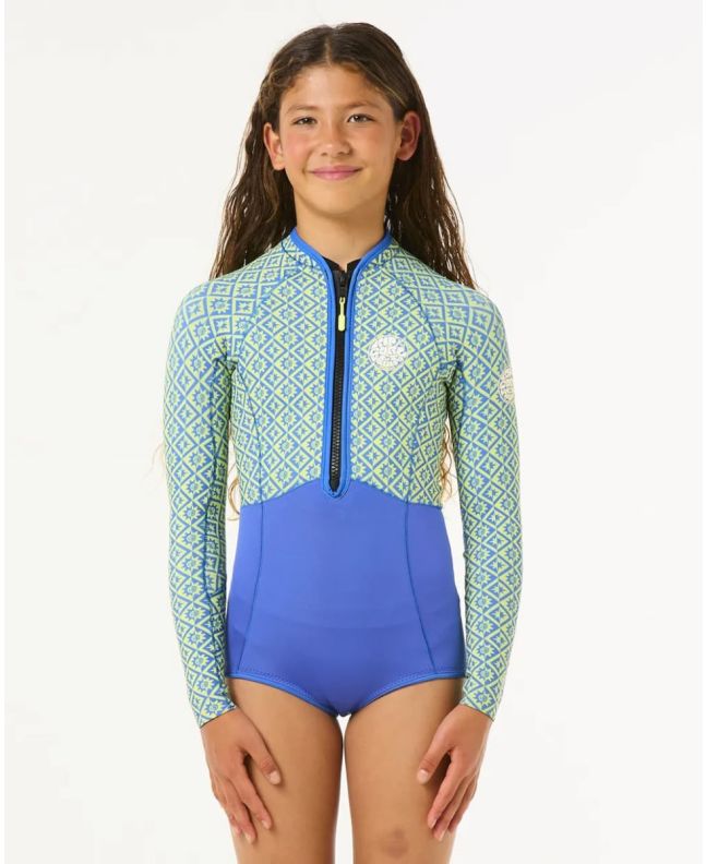 Traje de Neopreno Corto Rip Curl Junior G-Bomb con cremallera frontal 1.5mm Spring en color azul para niña (8-16 años)