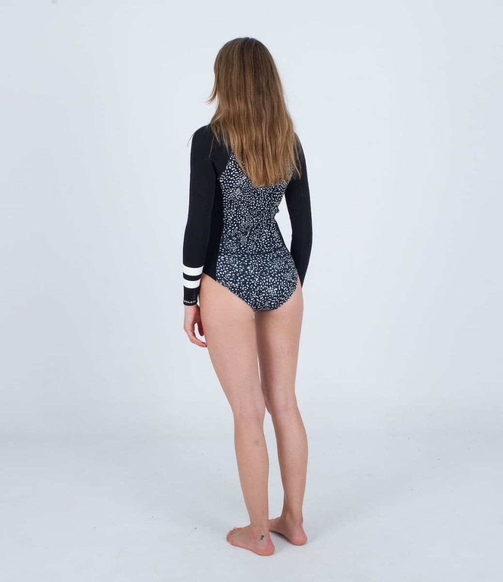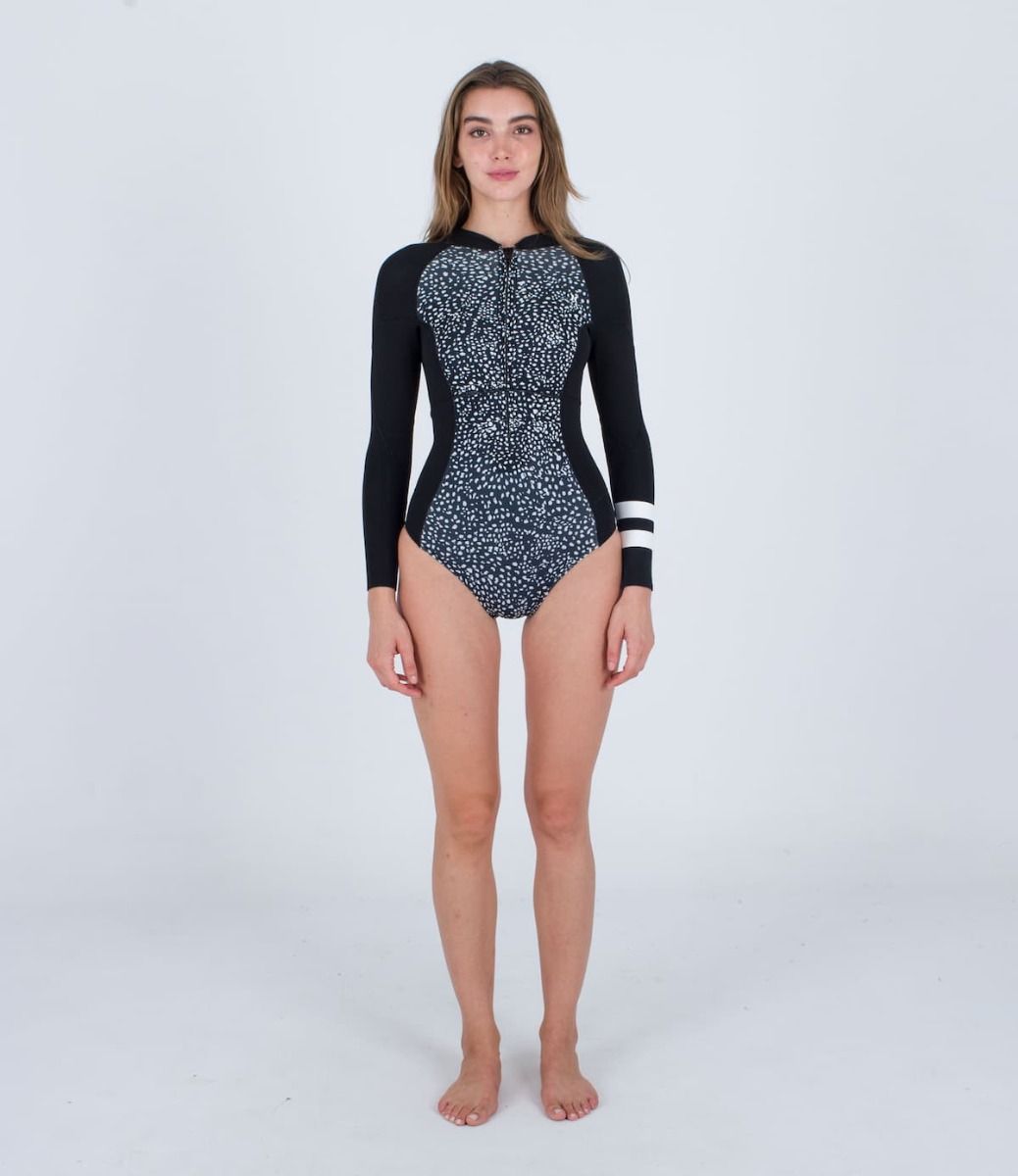 Neopreno de primavera con manga larga y cremallera frontal Hurley Advant Springsuit 2/2mm en color negro con animal print para mujer
