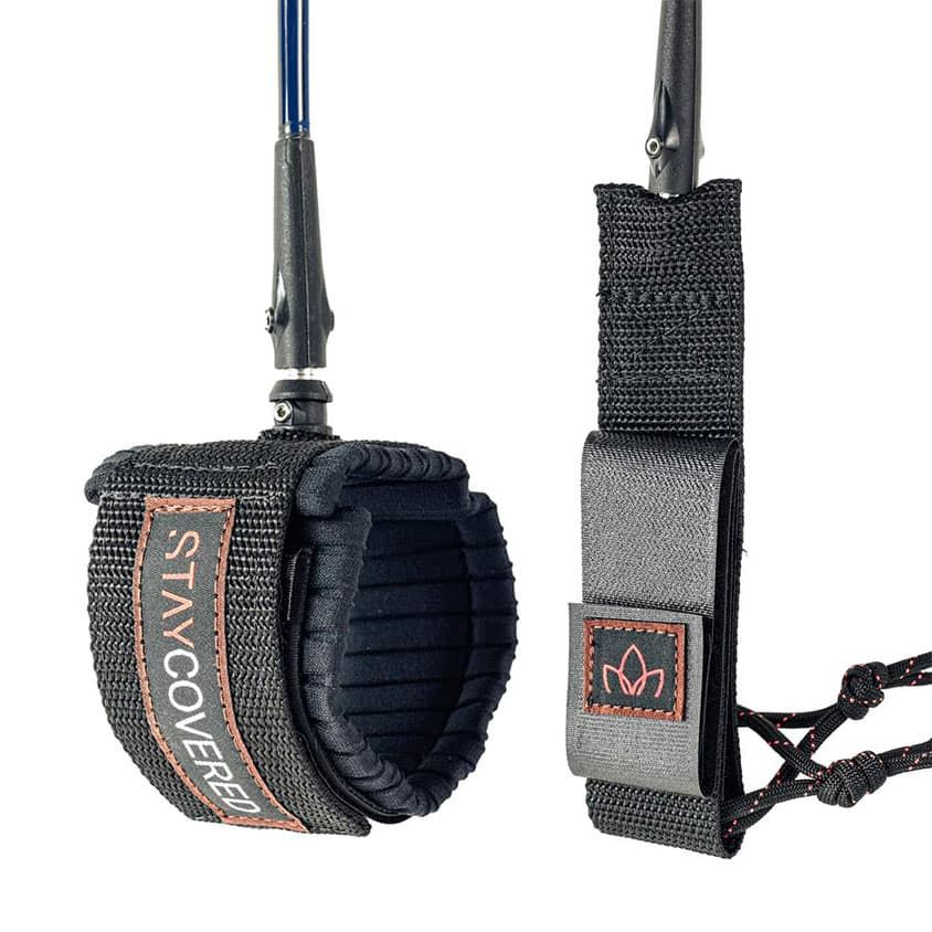 Este leash 9' de olas grandes color azul presenta correa de poliuretano extruido con 8mm de grosor, un puño más ancho, salva-cantos, a la vez que menos estiramiento y un agarre más fuerte que los leash de la gama estándar de Stay Covered.