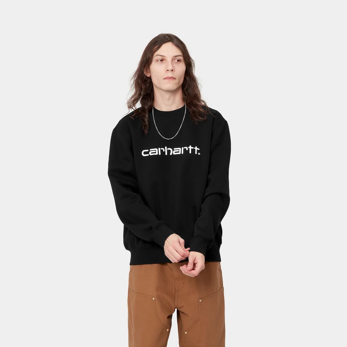 La sudadera sin capucha para hombre Carhartt Sweatshirt en negro con el logo bordado en blanco (Black-White) de Carhartt WIP está confeccionada con tejido de punto en mezcla de 58% algodón y 42% poliéster (440g/sqm).