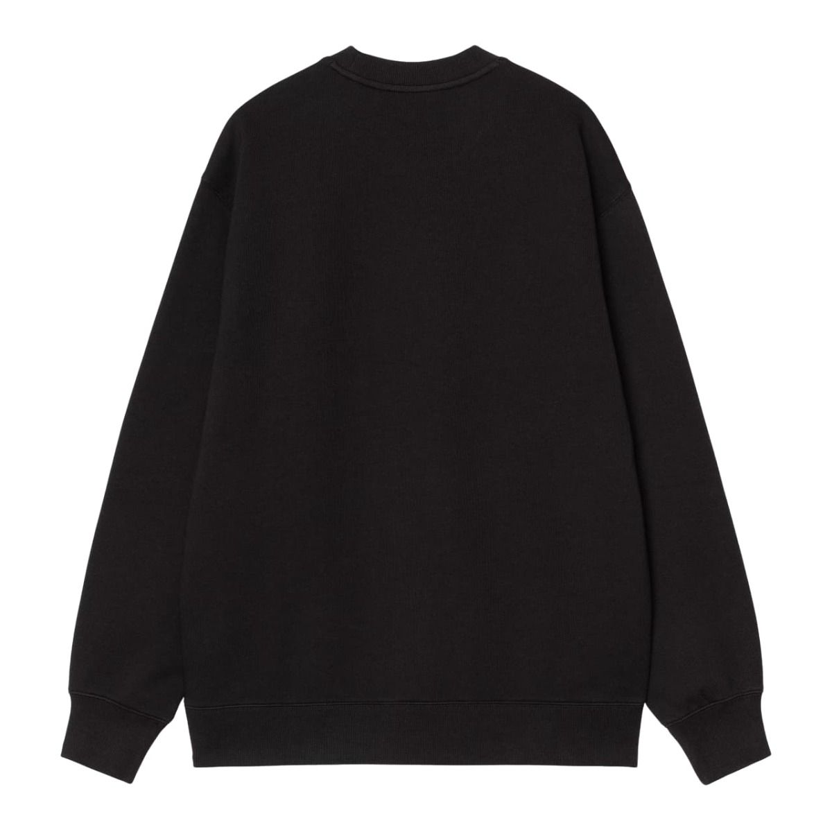 Esta sudadera básica negra de corte holgado y ajuste regular cuenta con cuello redondo, puños y cintura acanalados, junto con el logo en texto de Carhartt en plateado adornando la parte delantera.
