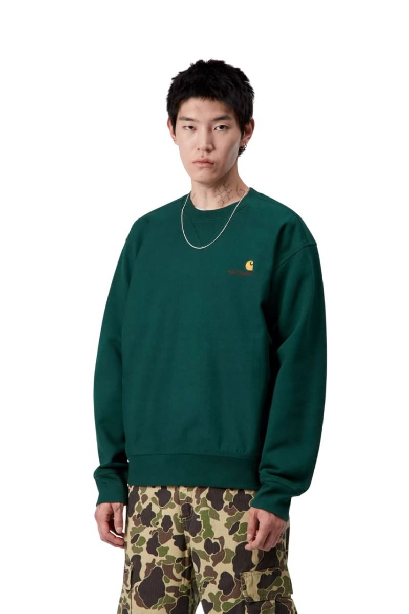 Sudadera Carhartt WIP American Script Sweatshirt para hombre, corte holgado y acabado premium en color verde (Dark Fir).