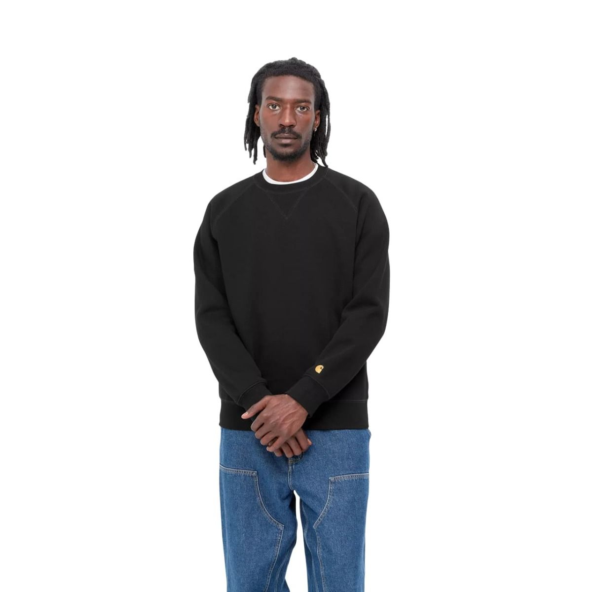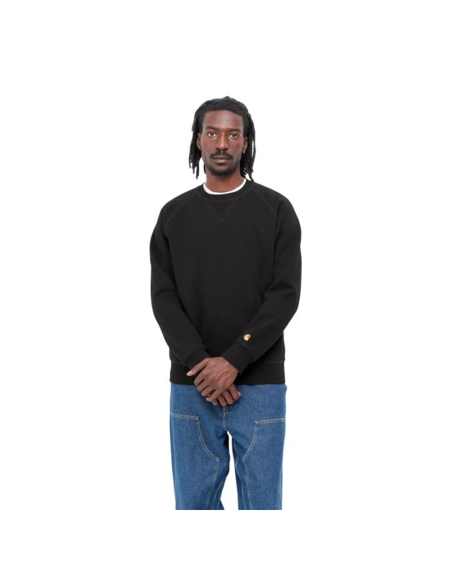 Sudadera Carhartt WIP Chase Sweatshirt en color negro con el logo en dorado para hombre