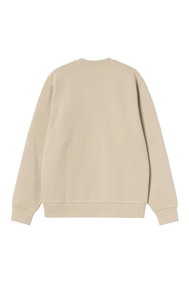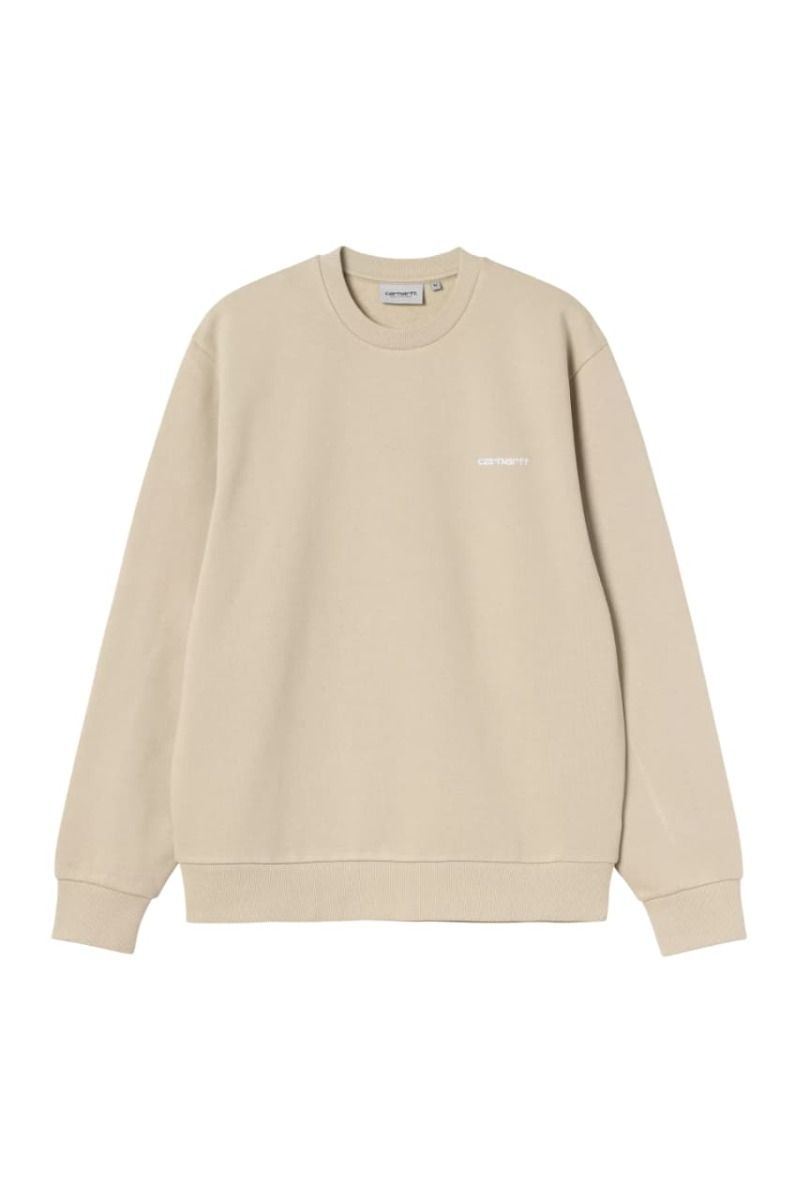 Sudadera Carhartt WIP beige 100% algodón pesado con bordado Script en blanco y corte regular, ideal para uso urbano diario.