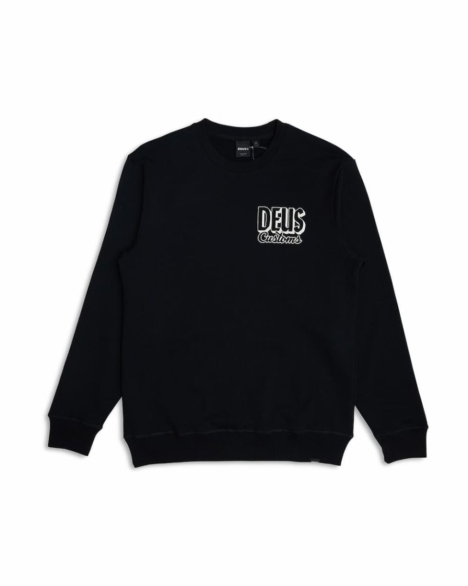 Este crew de corte regular cuenta con cuello redondo, forro polar interior cepillado, puños y bajo ribeteados, serigrafiado "Deus Customs" en la parte delantera izquierda, junto con la inscripción "In Benzin Veritas - Deus Ex Machina Customs - Camperdown" impresa en la zona posterior.