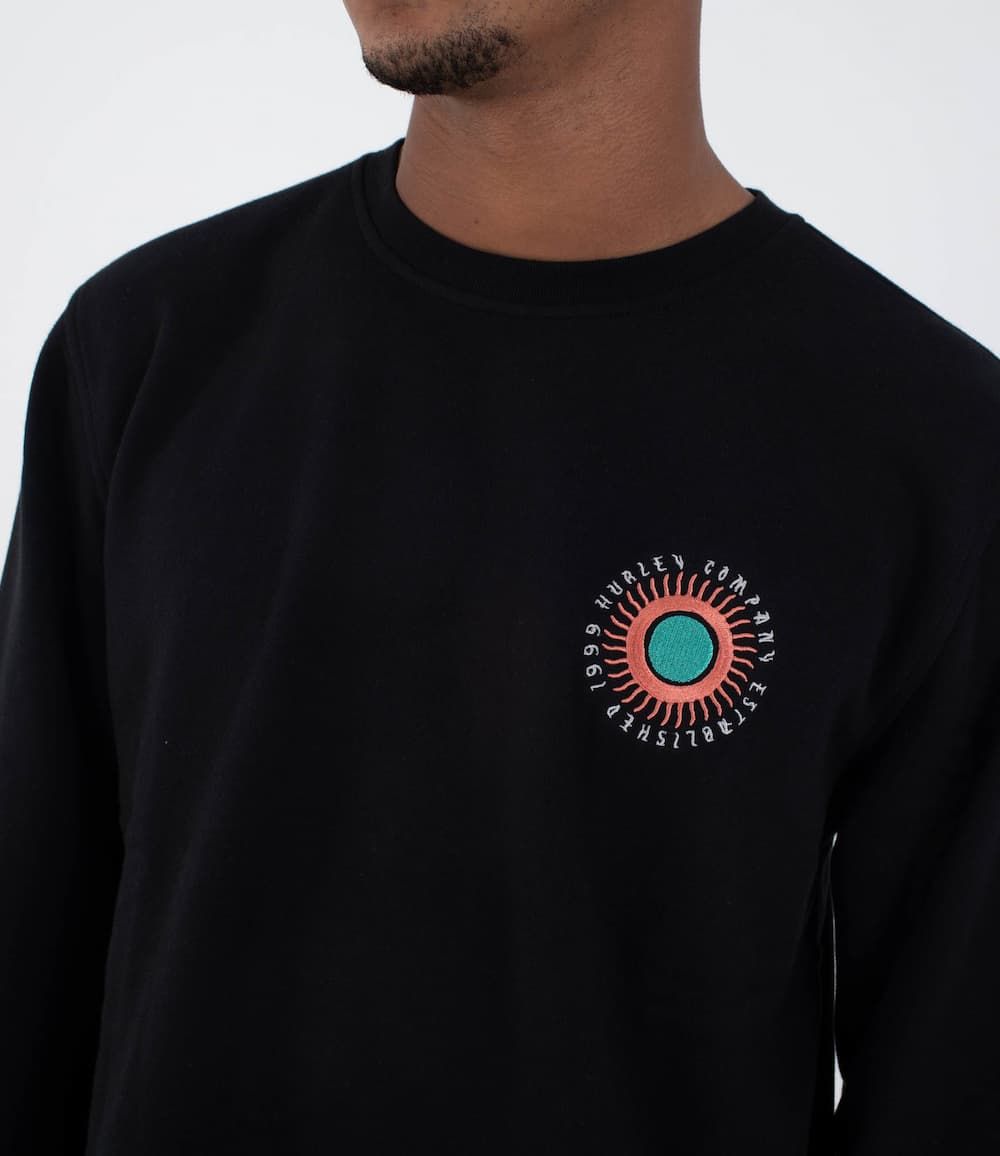 Sudadera negra Hurley con bordado frontale y gráfico estampado trasero. Comodidad, calor y diseño con actitud.