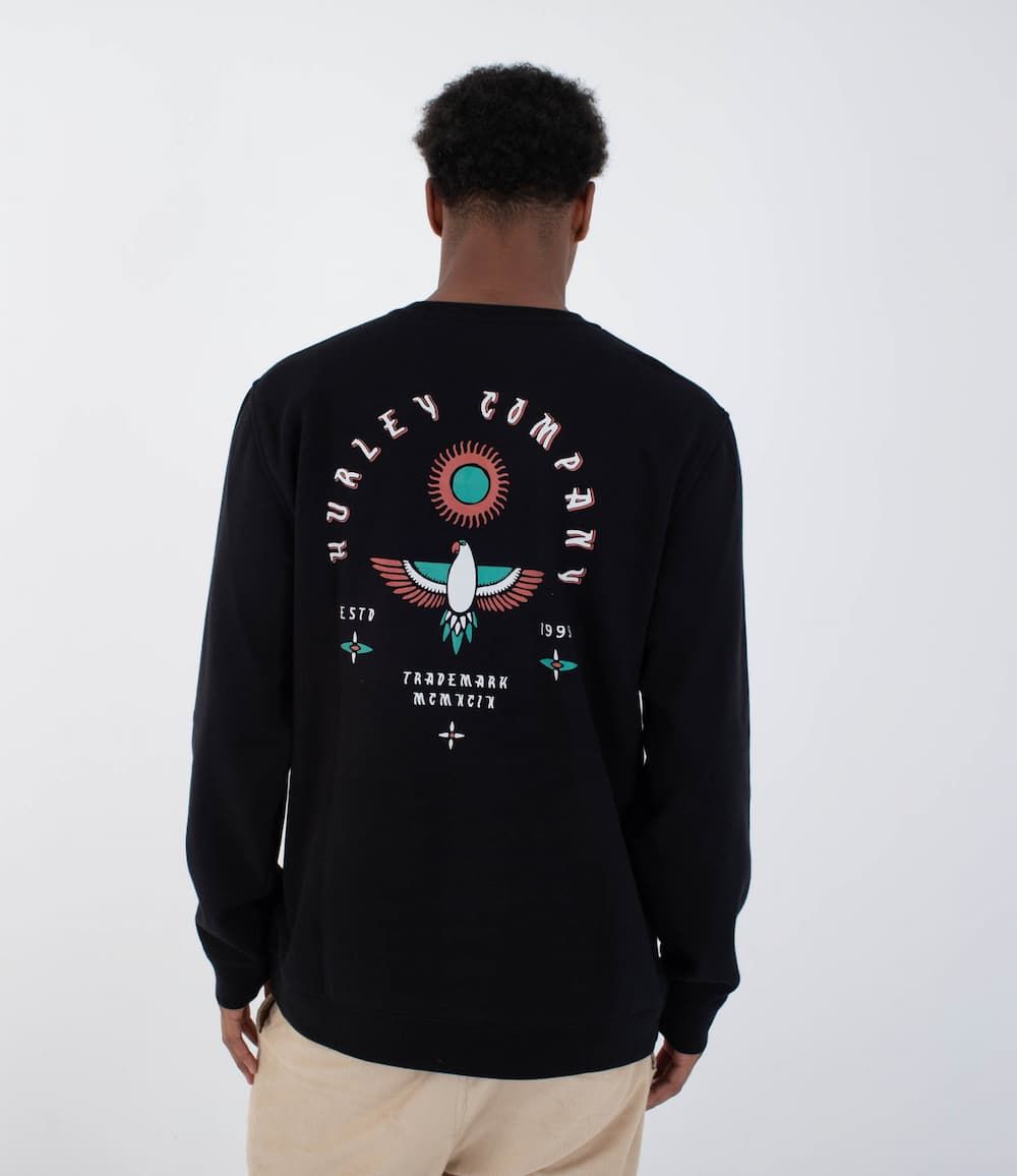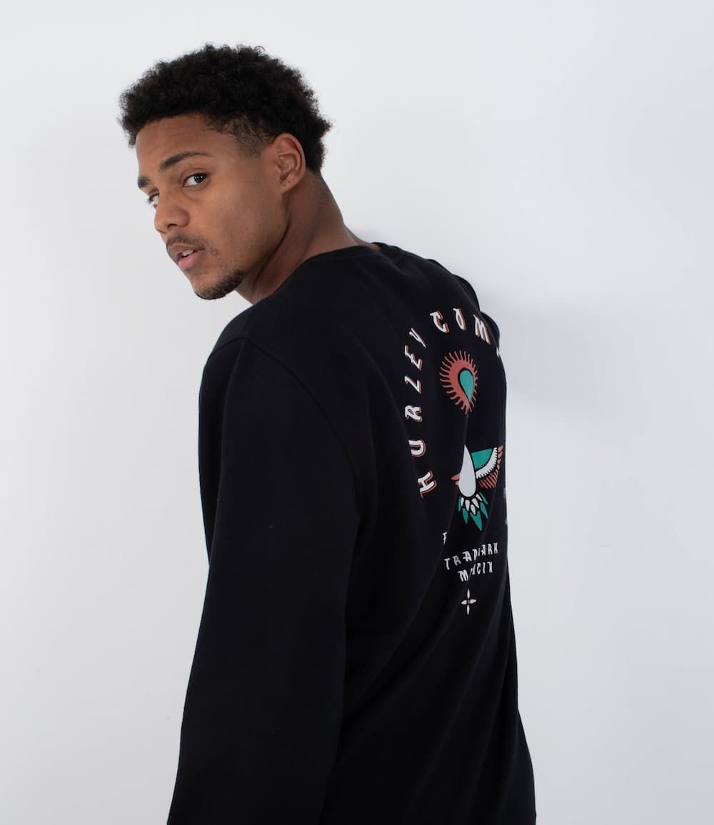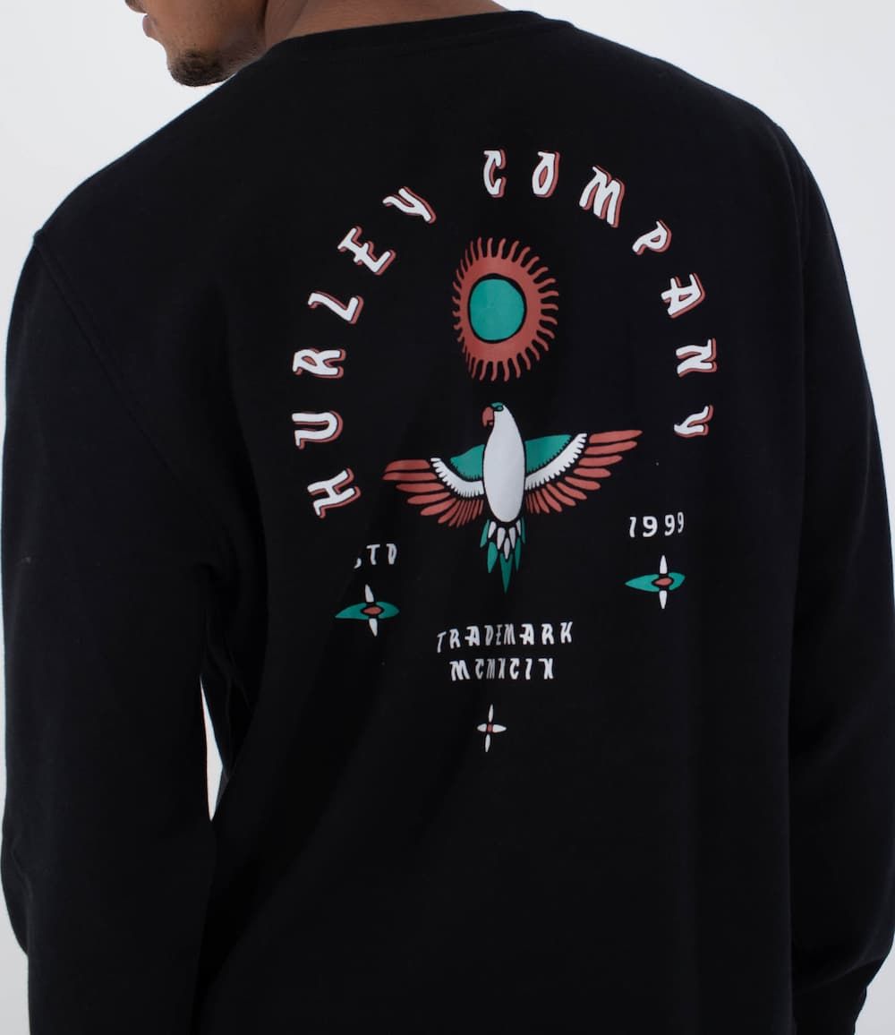 La Hurley Eagle High Crew en tono negro combina la comodidad de una sudadera clásica con el carácter gráfico y rebelde de la marca. Diseñada para quienes no pasan desapercibidos, esta sudadera de cuello redondo incluye un bordado en el pecho y estampado gráfico en toda la espalda con una estética urbana de inspiración tribal y surfer.