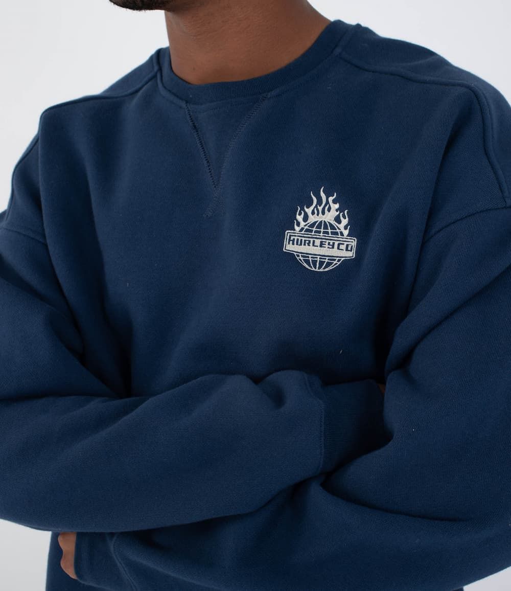 Sudadera Hurley con interior fleece, fit relajado y gráfico potente. De la colección BUILT, pensada para creadores que no paran.