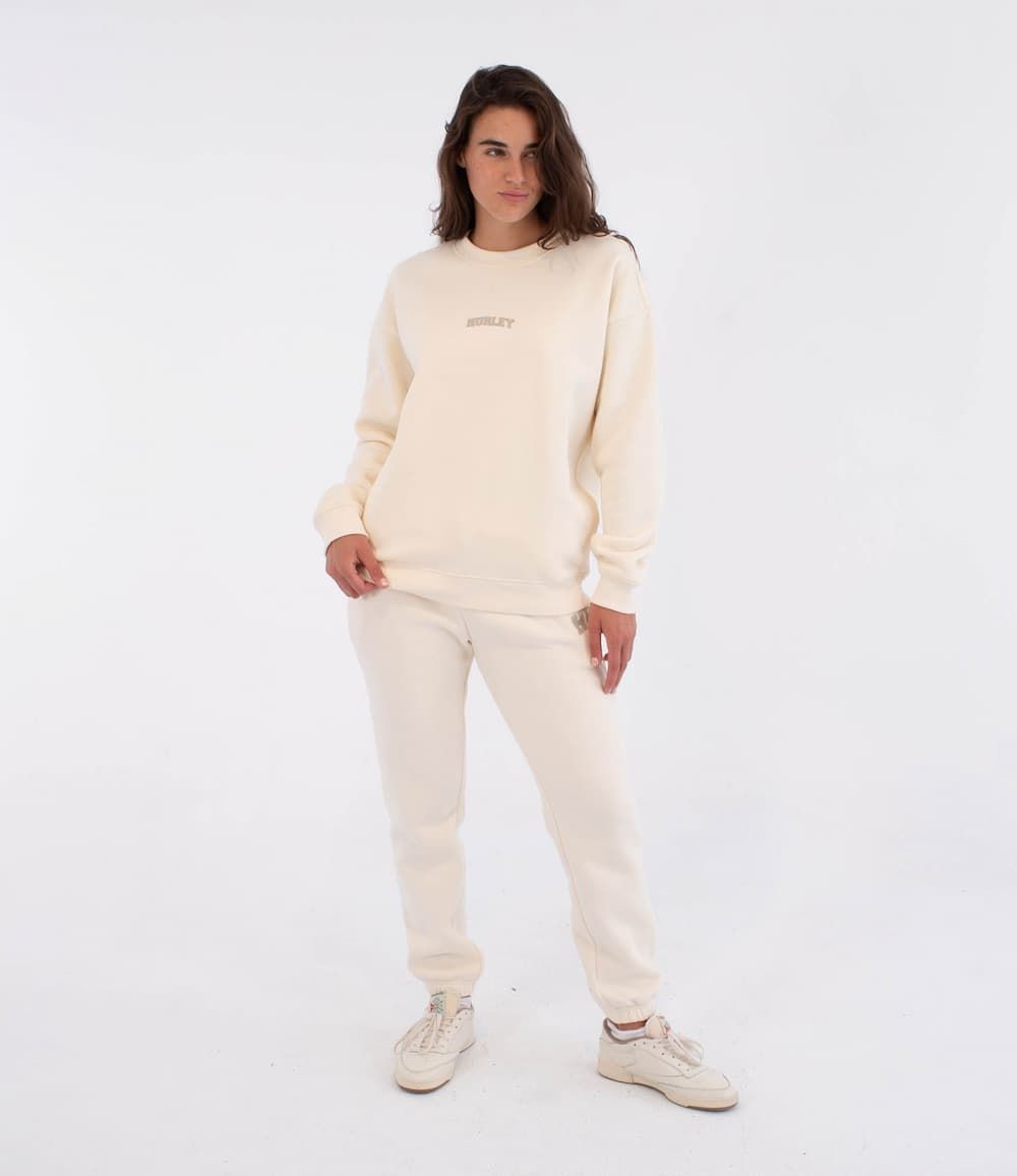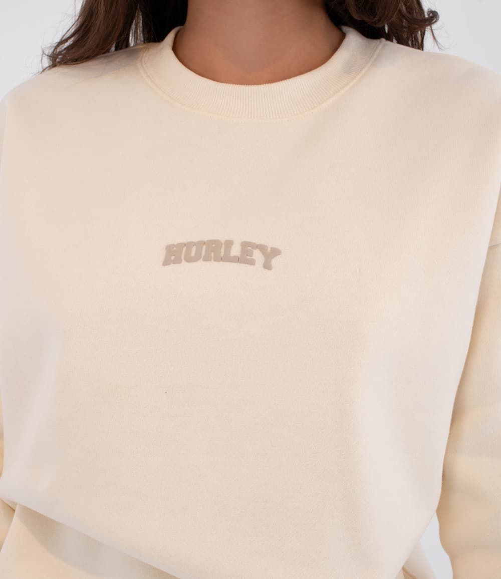 Sudadera con cuello redondo para mujer, con interior suave y gráficos acolchados. Diseño Hurley 100% urbano.