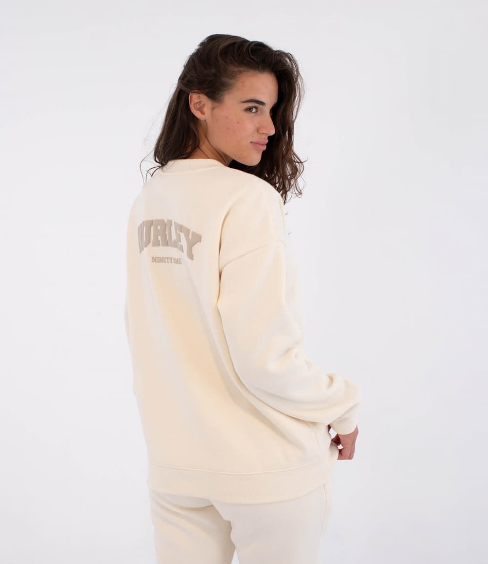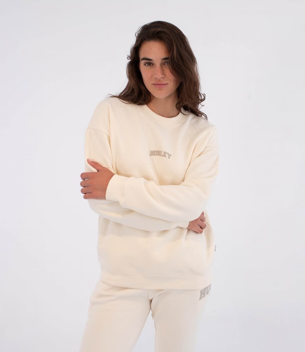 La sudadera para mujer Hurley Stadium Crew en tono beige (Pearl) Ivory fusiona lo mejor del confort diario con un diseño gráfico muy cuidado. Pensada para quienes se mueven entre el surf y la ciudad, esta pieza se adapta a todo tipo de planes relajados con un acabado pulido. Su tejido fleece interior es cálido y agradable, mientras que los estampados puffer en el pecho y la espalda elevan el look con un toque visual que destaca sin estridencias.