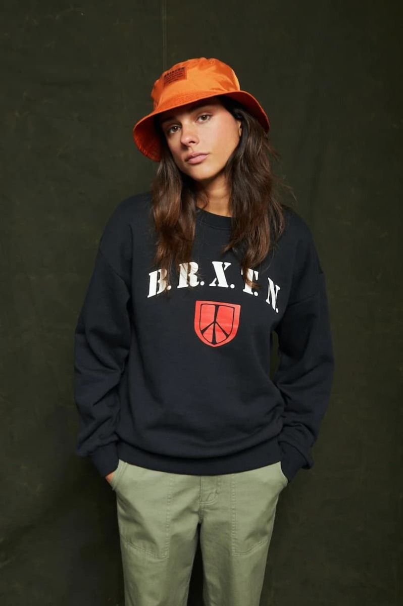 La sudadera para mujer Peace Shield Women's Crew en negro (Black) de Brixton está confeccionada con mezcla de 77% algodón y 23% poliéster reciclado.