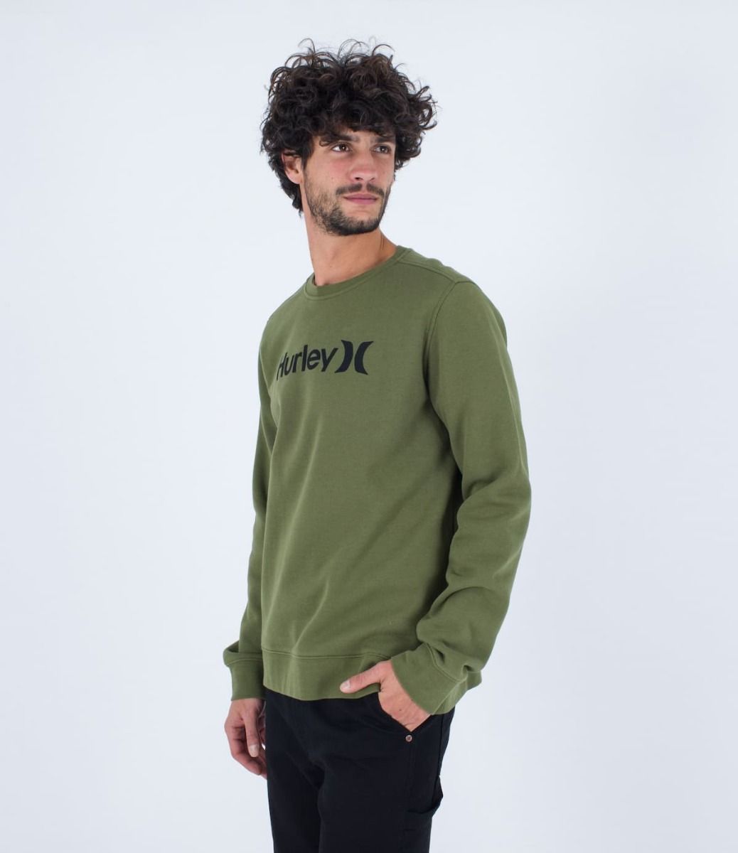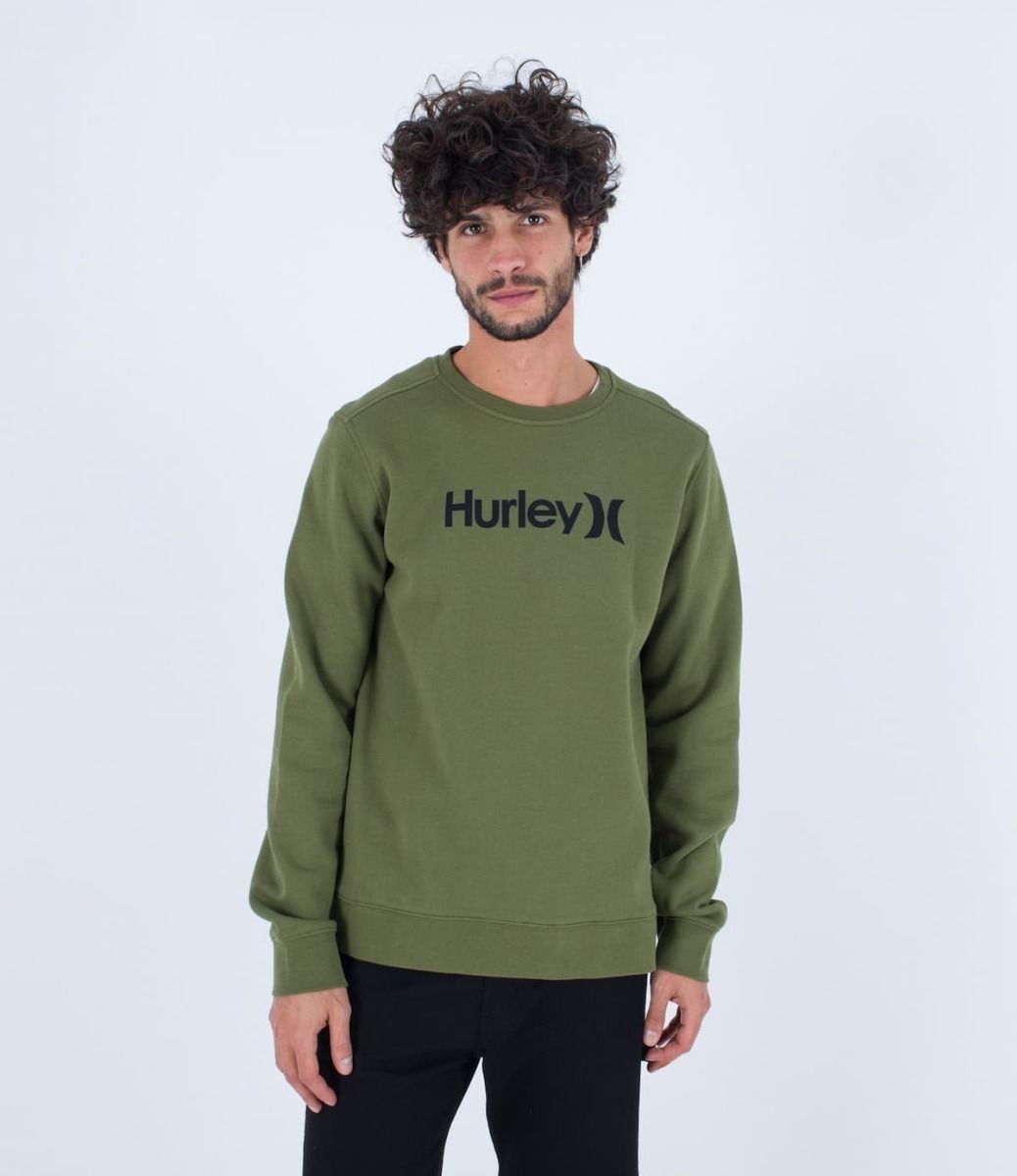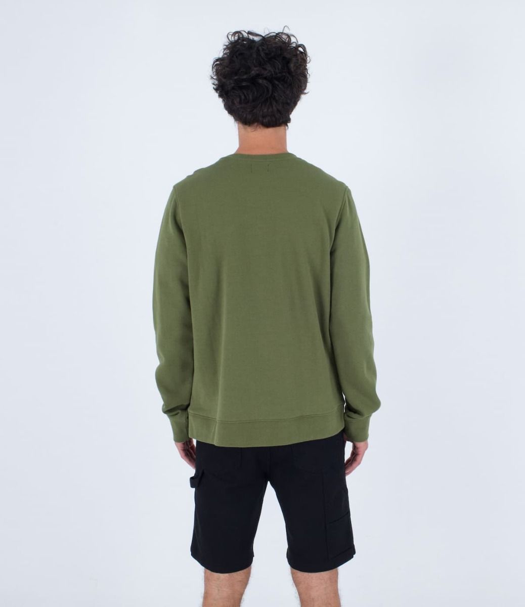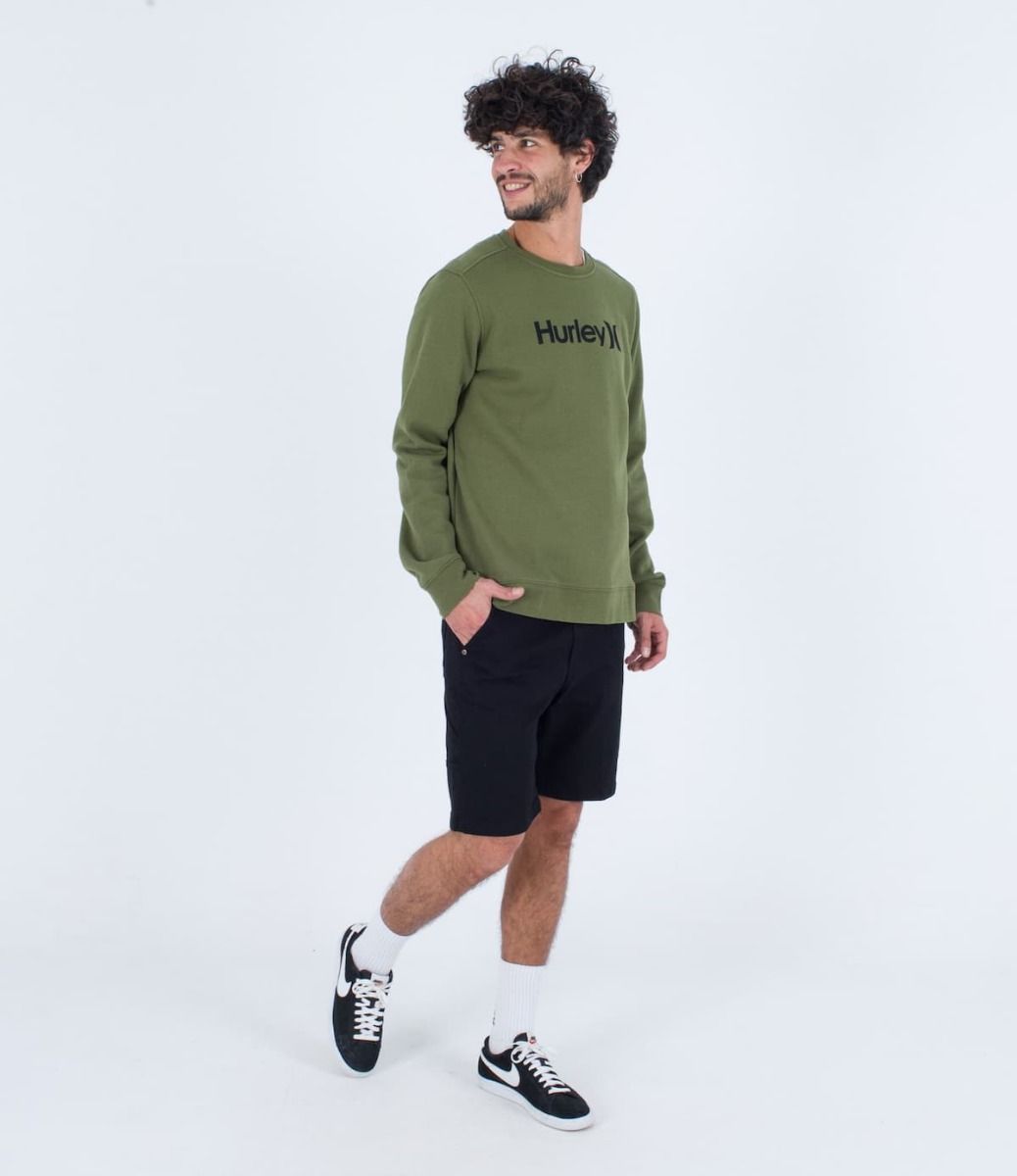La sudadera sin capucha para hombre One and Only Seasonal Crew Fleece en verde (Moss Green) de Hurley está confeccionada con 80% algodón y 20% poliéster.