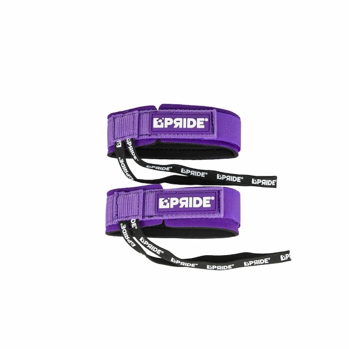 Sujeta aletas Pride Velcro Fin Tethers en color púrpura, con cierre de velcro y acolchado, para máxima seguridad y comodidad en bodyboard.