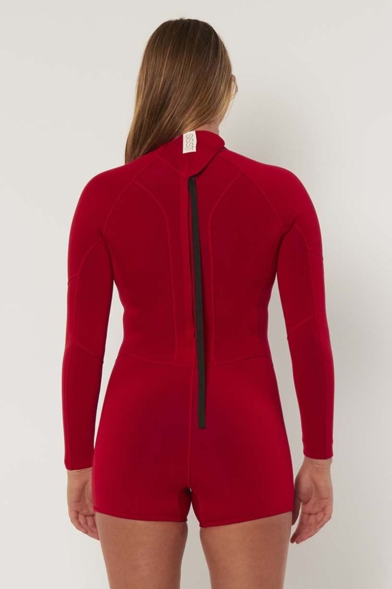 Traje de neopreno corto con manga larga y cremallera en la espalda Sisstrevolution Summer Seas 2/2mm en color rojo para mujer