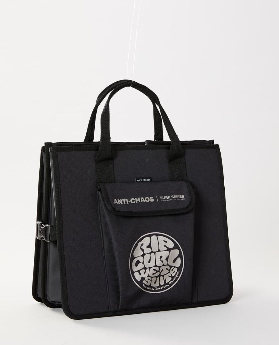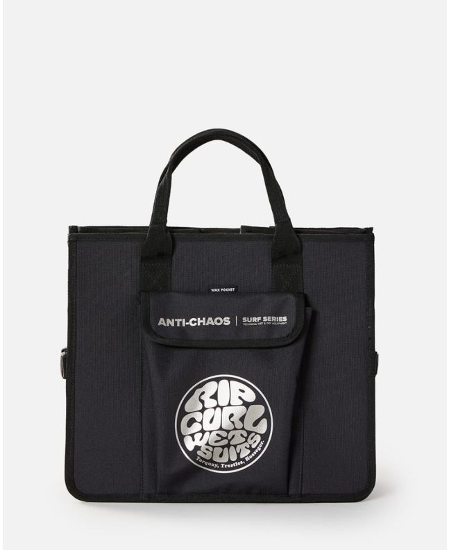 La bolsa plegable Surf Series Anti-Chaos Bucket negra tiene el sello de garantía Rip Curl.