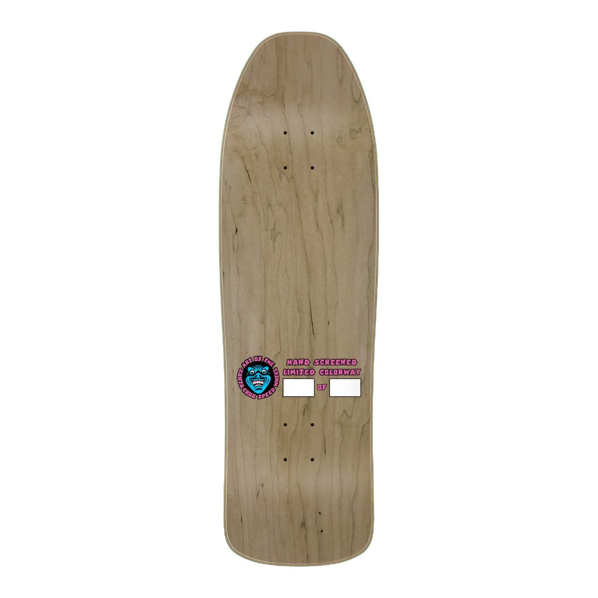 Esta tabla para monopatín de Edición Limitada cuenta con chapa teñida en tono rosa y amarillo con efecto de desvanecimiento, el gráfico de Santa Cruz Speed Wheel estampado con calor en la cola, junto con serigrafiado artístico de Jim Phillips y Phillips Studios de la Era Dorada de Santa Cruz Speed Wheels.