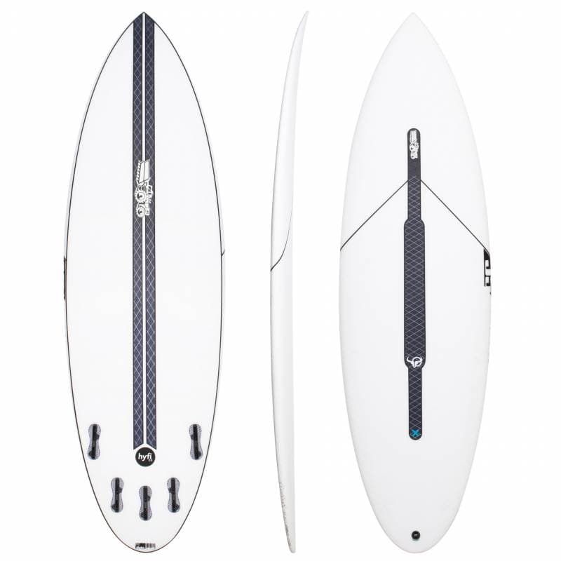 La tabla de surf Bullseye HYFI 2.0 5'8" 29,5 Litros en blanco (White) de Js Industries está fabricada con tecnología epoxy HYFI, una construcción multicapa única que proporciona a esta shortboard más ligereza y fuerza, a la vez que conserva la flexión ideal para un rendimiento máximo.