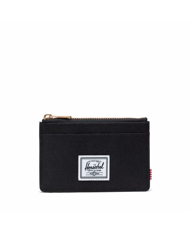 Tarjetero Herschel Oscar Negro con compartimento de cremallera y protección RFID. Diseño compacto y práctico para llevar lo esencial con seguridad y estilo.