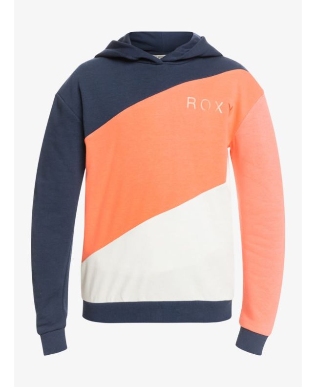 Este hoodie juvenil de corte relajado, causal y cómodo, tiene un diseño en bloques de color, capucha, cuello cruzado, un bolsillo tipo canguro y el logo de ROXY estampado en el pecho.