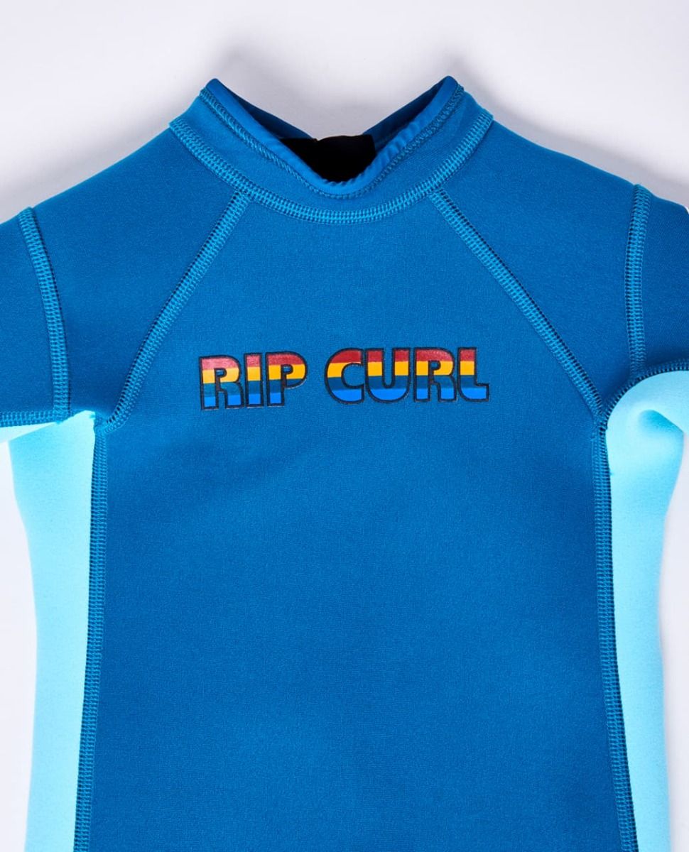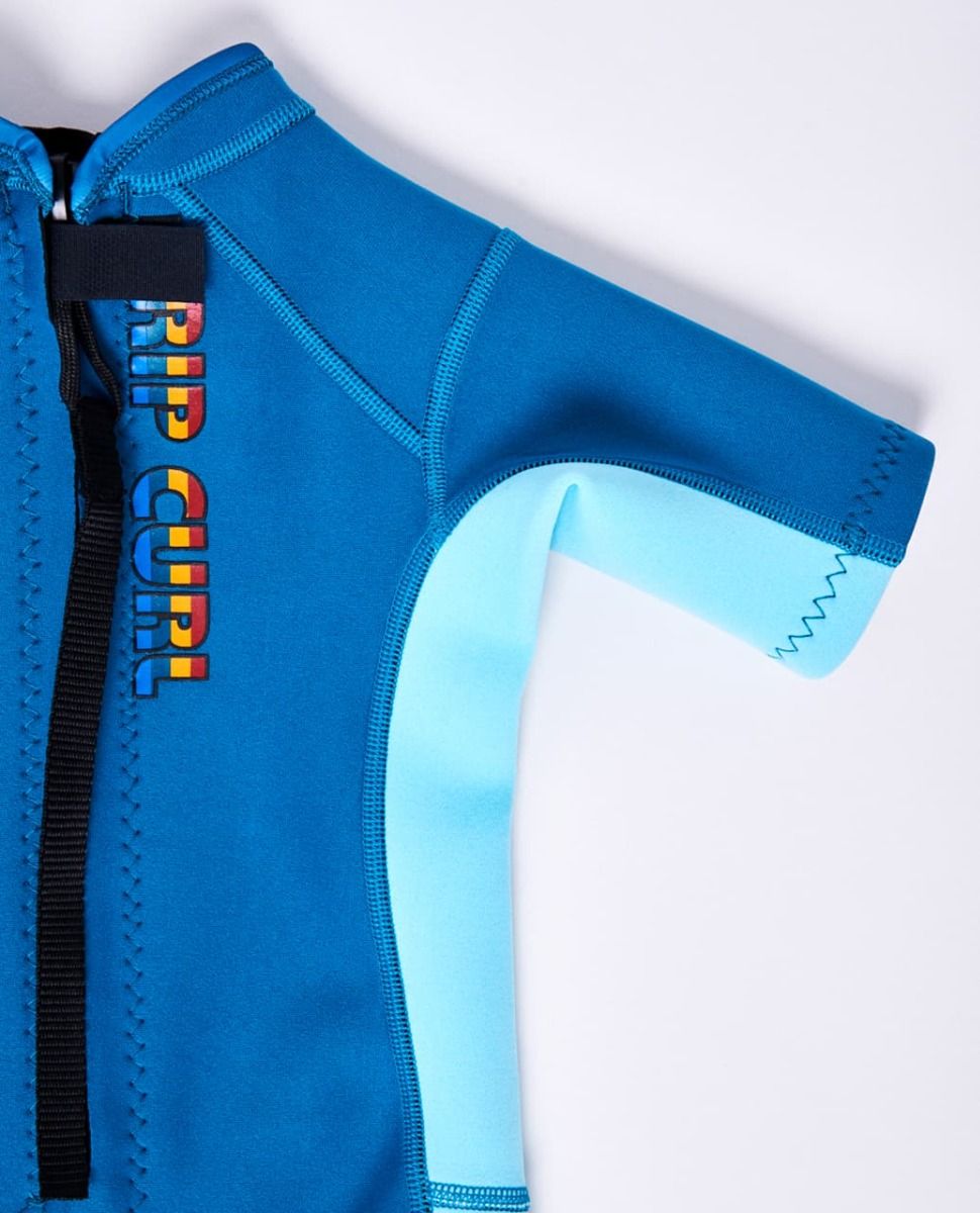 Traje de Surf de primavera con manga corta y cremallera en la espalda Rip Curl Groms Omega 1.5mm en color azul para niño/a (2-6 años)