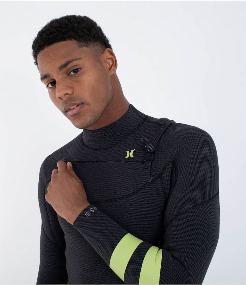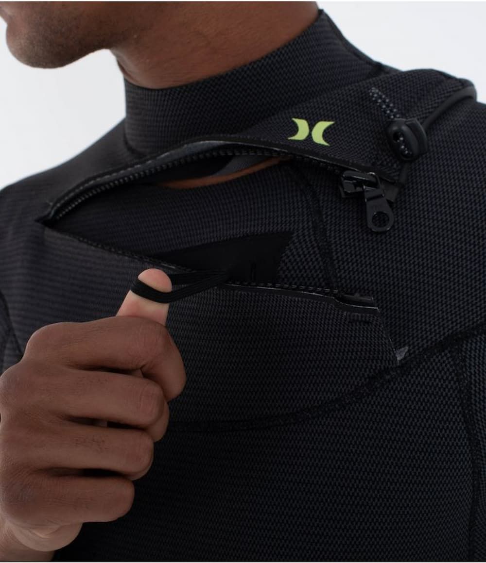 Presenta un elegante tono negro con detalles Block Party en color Lemon, logotipos Hurley en contraste y acabados limpios que transmiten precisión y rendimiento. El cuello Smoothskin sella contra el agua, y el panel del pecho incluye un bolsillo interno para llaves muy práctico para sesiones largas.