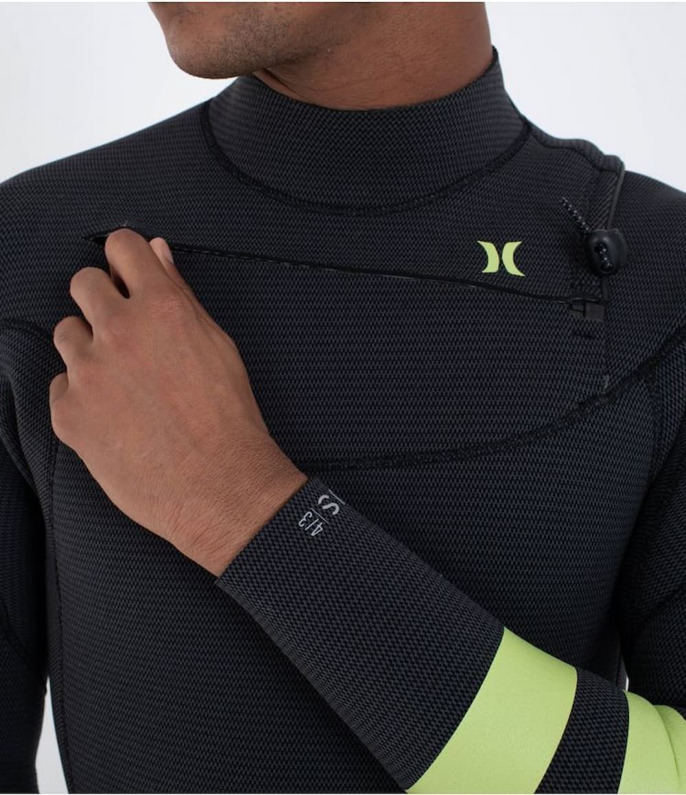 Traje de Surf con cremallera en el pecho Hurley Plus 4/3mm Fullsuit Black-Lemon – Rendimiento y calidez máxima