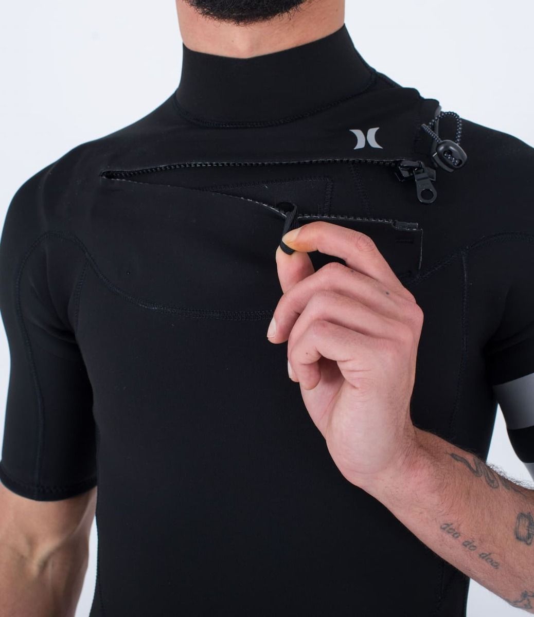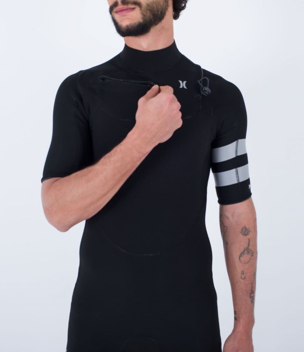 Traje de neopreno con manga corta y cremallera en el pecho Hurley PLUS 2/2mm en color negro para hombre