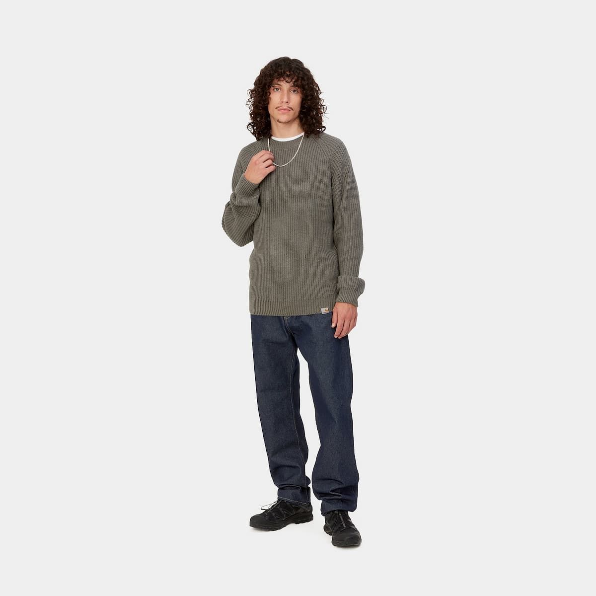 Estos jeans clásicos de 5 bolsillos cuentan con tiro regular, ajuste recto relajado, denim aclarado para un aspecto desgastado, bragueta de cremallera, canesú trasero, remaches metálicos y costuras reforzadas en zonas de tensión, bolsillos delanteros, bolsillo para monedas, bolsillos posteriores y una etiqueta con el logo de Carhartt cosida en el bolsillo posterior derecho.