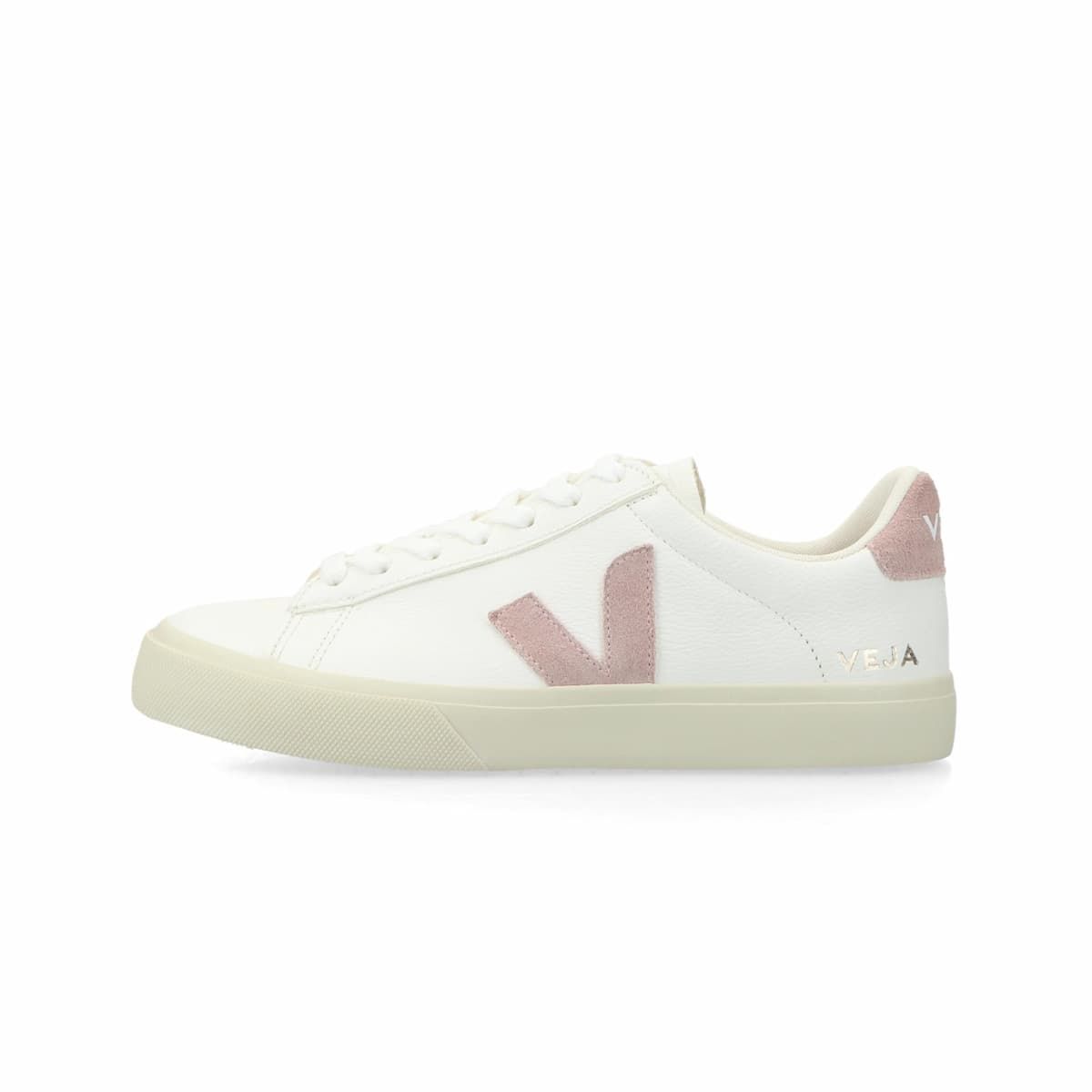 Zapatillas Veja Campo Chromefree Leather blancas con detalles en color rosa Unisex | Extra White Babe