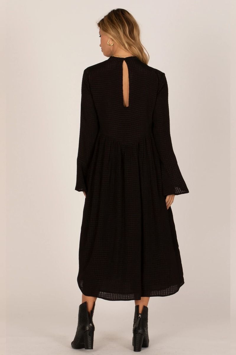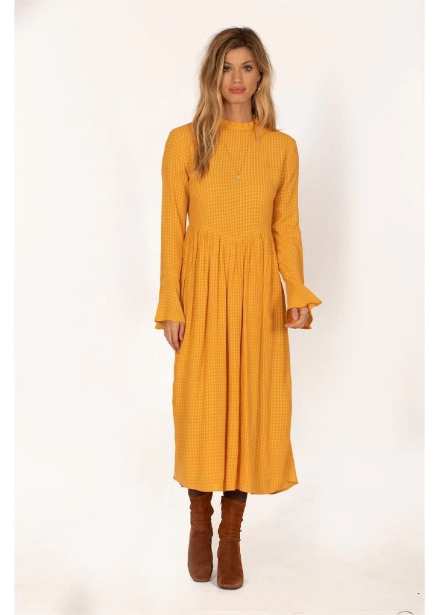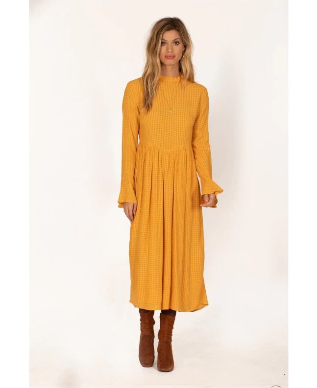 El vestido largo Lia de Amuse Society está disponible en negro (Black) y amarillo (Gold).