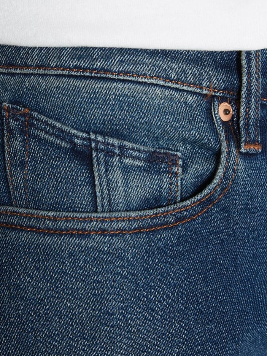 Los pantalones vaqueros elásticos Vorta Denim Retro Blue no incorporan lavado a la piedra ni suavizante y combina los lavados enzimáticos y de desaprestado para limitar el consumo de agua (Volcom Water Aware).