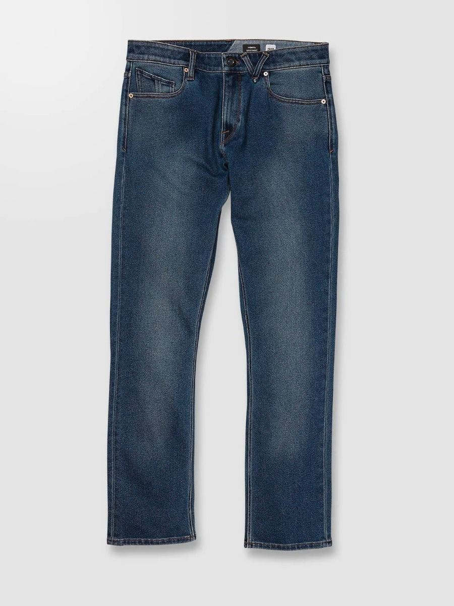El pantalón vaquero para hombre Vorta Denim en azul (Retro Blue) de Volcom está confeccionado con 70% algodón y 30% elastano