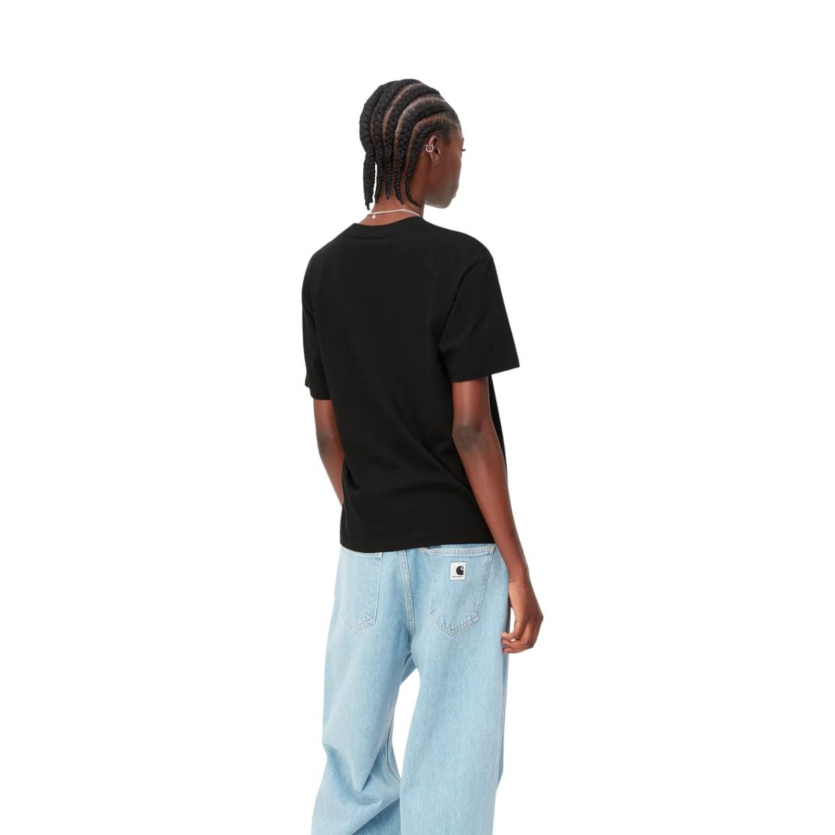 La camiseta para mujer Women's S/S Script Embroidery T-Shirt en tono negro con el logo en blanco (Black-White) de Carhartt WIP está confeccionada con 100% tejido jersey de algodón orgánico ligero (150g/sqm).