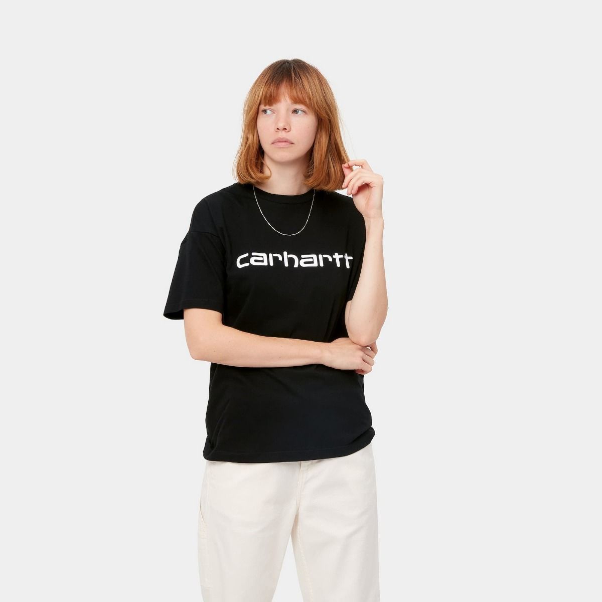 La camiseta de manga corta Women's Script SS negra de Carhartt WIP está confeccionada con tejido punto jersey de algodón orgánico (150g/sqm).