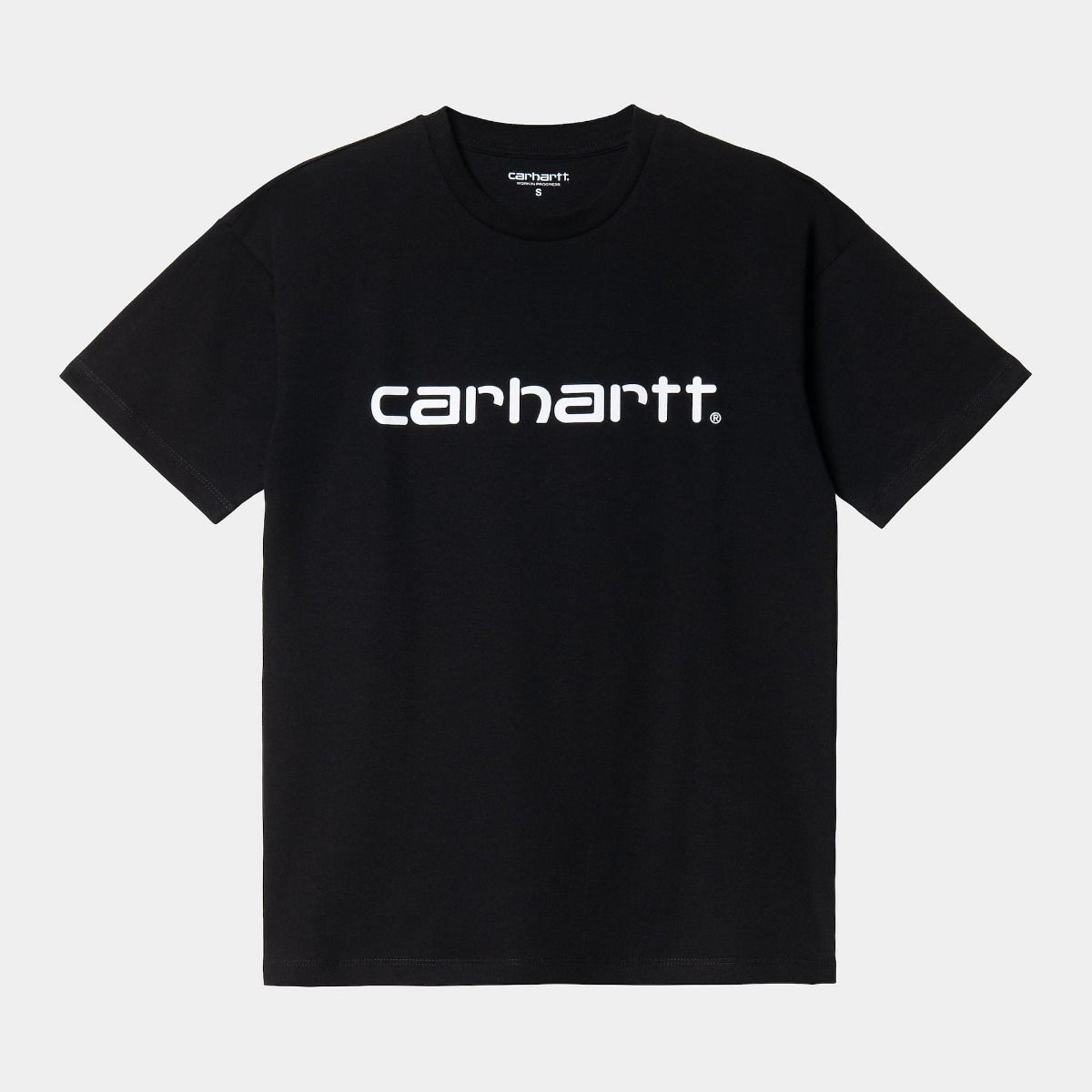 La camiseta de manga corta Women's Script negra tiene el sello de garantía Carhartt WIP en el interior.