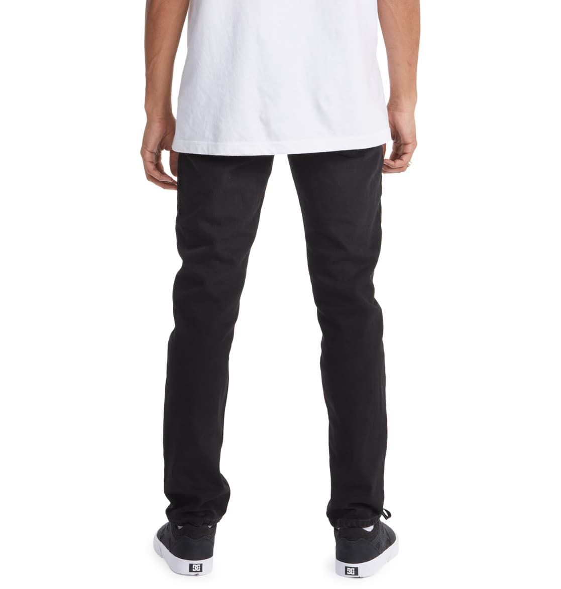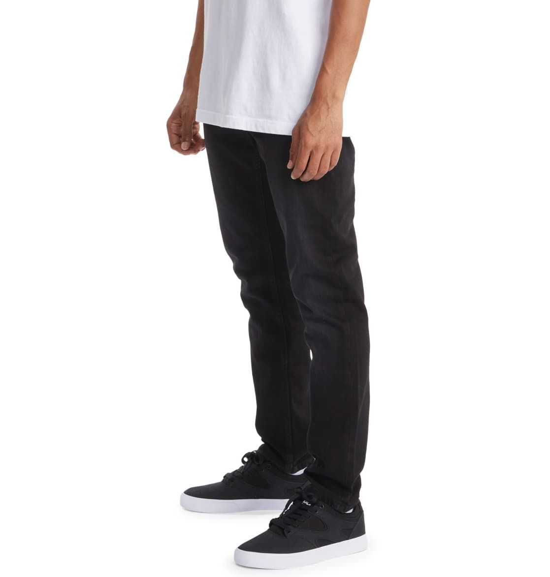 Estos jeans de corte ajustado, estrecho pero no demasiado ceñido, cuentan con tiro medio, puntaje EIM de bajo impacto, cintura normal, pierna ligeramente acampanada desde la rodillas hasta la parte de abajo con una apertura de 13,5", corte ceñido en la cadera y el muslo, bragueta con cierre de cremallera, bolsillos delanteros, bolsillo para monedas, bolsillos posteriores, lavado con bajo consumo de agua y los adornos metálicos característicos de DC Shoes.