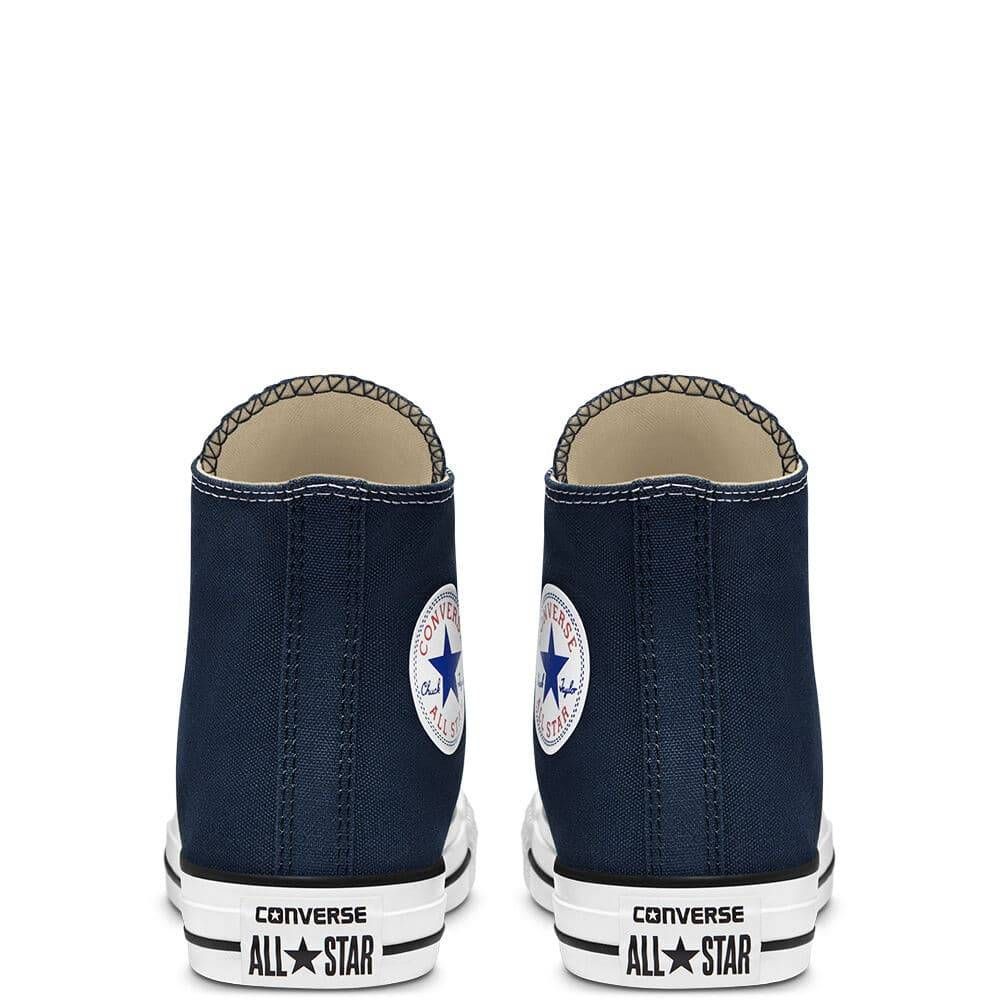 Las zapatillas de caña alta Converse Chuck Taylor All Star azul marino Unisex tienen el de sello Converse All Star en el talón.