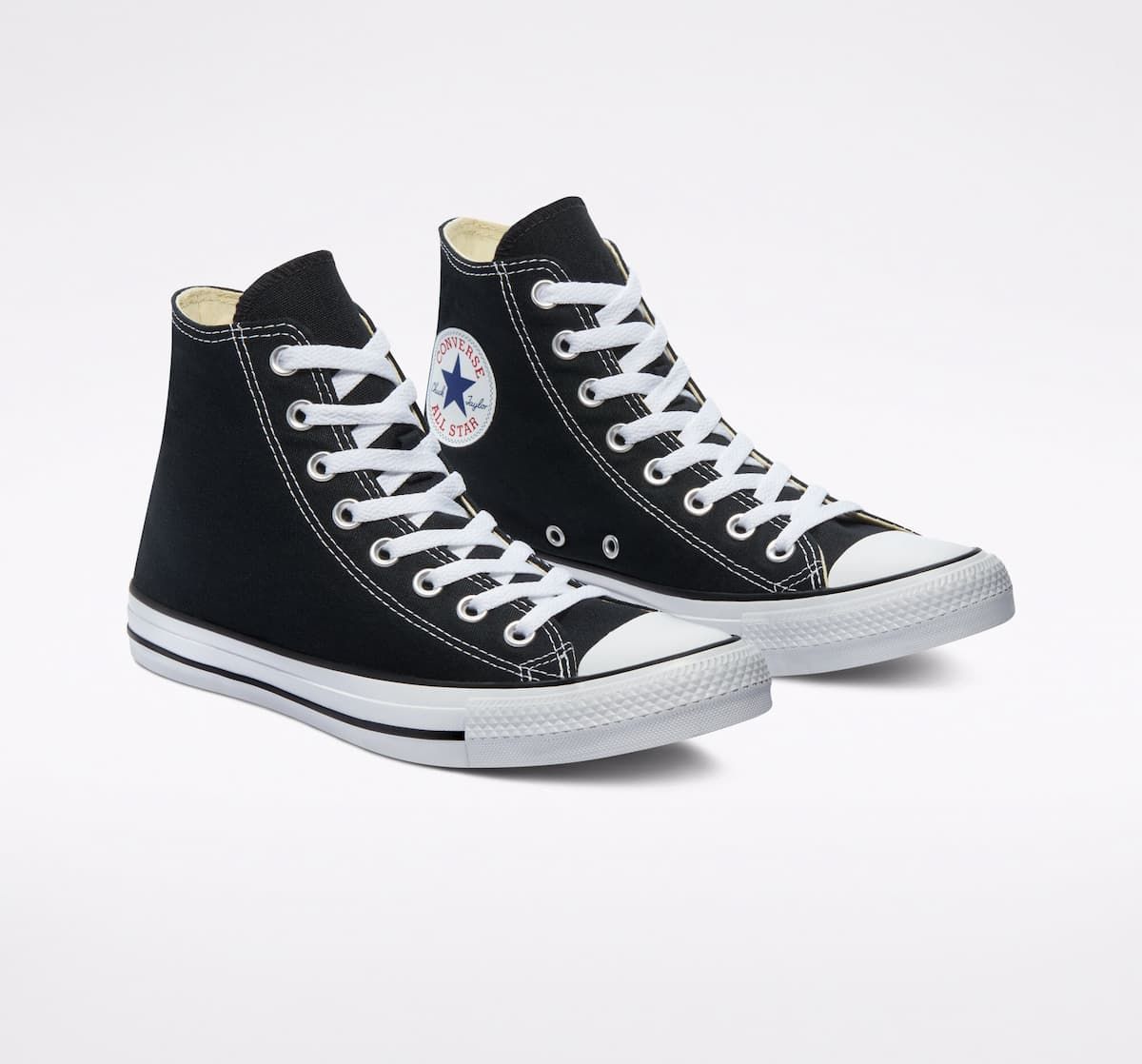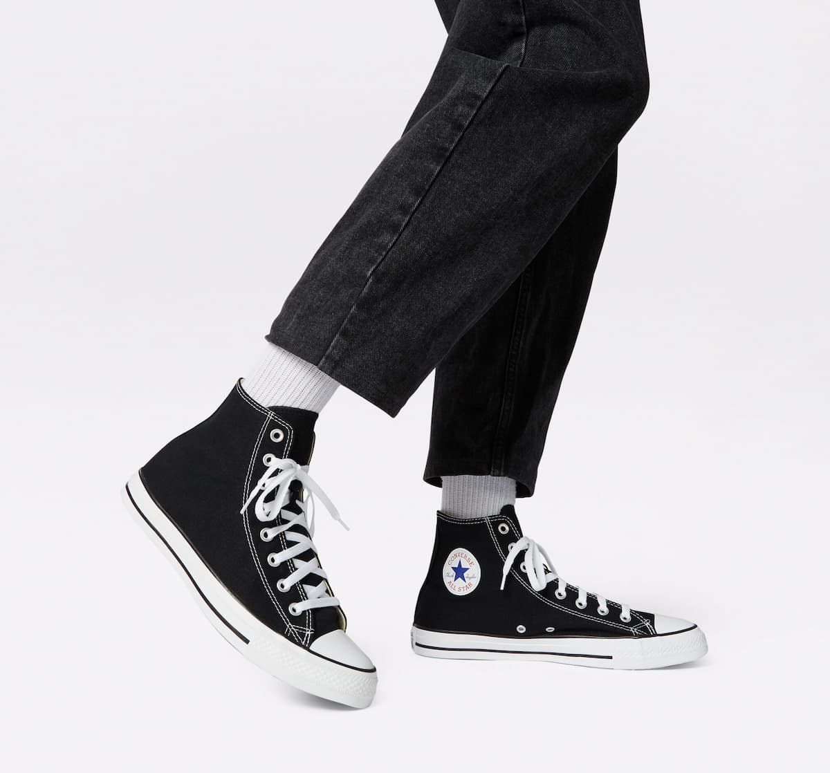 Estas icónicas zapatillas negras de caña alta, creadas en 1917, son un básico imprescindible gracias a su silueta atemporal, el inconfundible parche del tobillo con la estrella de Converse y su suela de goma vulcanizada.