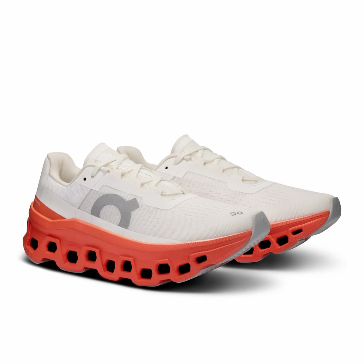 Las zapatillas para mujer Cloudmonster en tono blanco y naranja (White-Flame) de On son un auténtico monstruo del running en asfalto con la Cloudtec® más grande hasta el momento de On Running para una amortiguación y energía máximas.